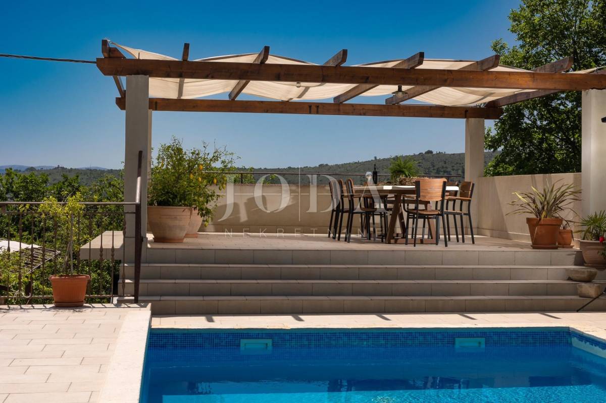 Na centralnom dijelu okućnice je veliki bazen sa sunčalištem te vidikovac.