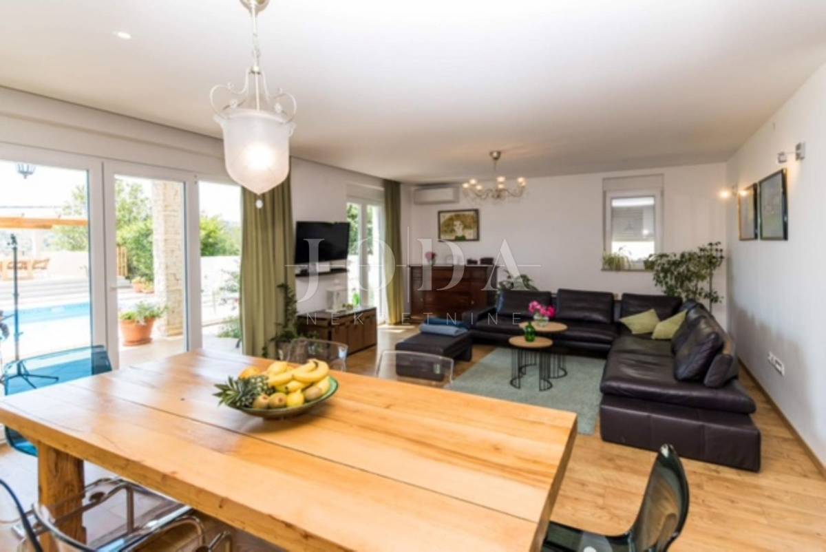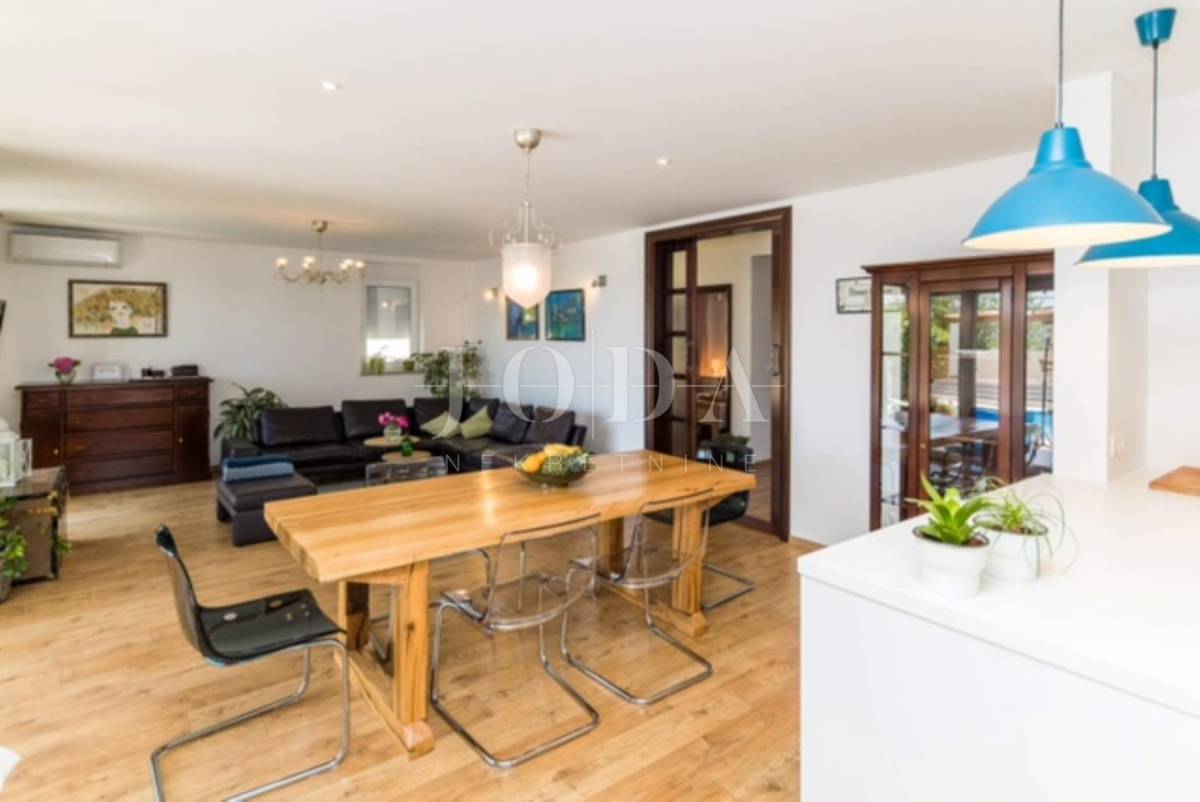 Prizemlje je otvoreni prostor dnevnog boravka kuhinje i blagavaonice,te spavaće sobe kupaonice i zasebnog wc-a.Unutarnjim stubištem se dolazi na kat unutar kojega su smještene tri spavaće sobe te dvije kupaonice.