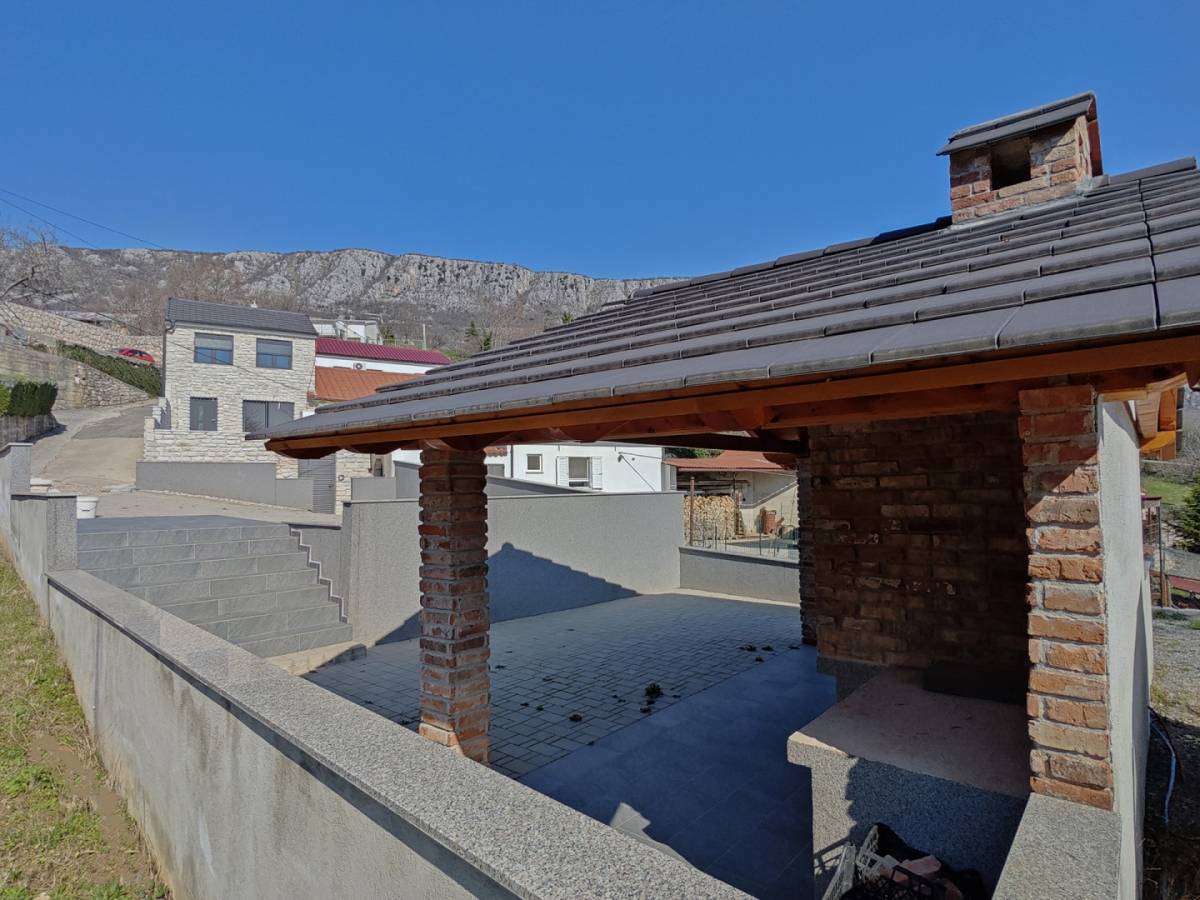 Okućnica od 500 m² uređena je za boravak na otvorenom. Uz bazen i sunčalište nalazi se velika pečenjara te natkriveni prostor za druženje, pogodan za obiteljske ručkove ili večernja okupljanja. Odvojeni dio okućnice predviđen je za parkiranje, s tri parkirna mjesta.