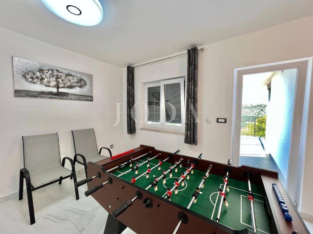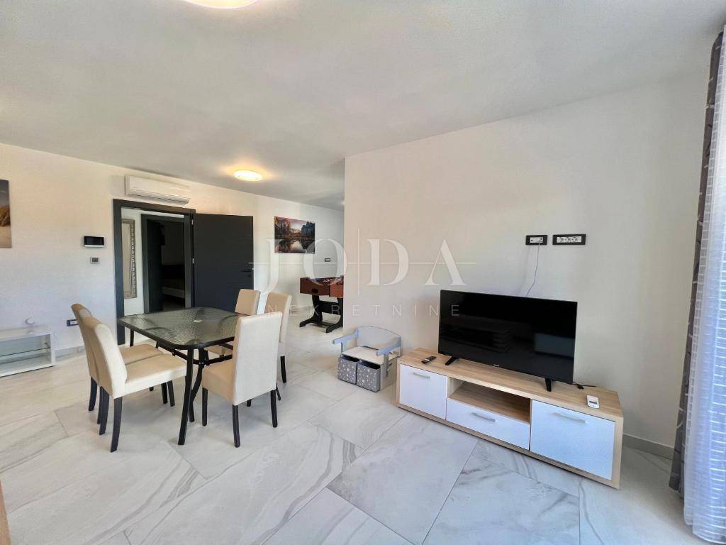 Stan se sastoji od kuhinje sa blagovaonom, dnevnog boravka, tri spavaće sobe, dvije kupaones sa pripadajućim sporednim dijelovima: terasa površine 19,08 m2 (4,77 m2), natkriveni ulaz površine3,64 m2 , natkrivena terasa površine 25,44 m2 i nenatkrivena terasa površine 7,36 m2. Stanu pripada još: parkiralište površine 18,00 m2 .Nekretnina je građena visoko kvalitetnim materijalima, postavljeno podno grijanje i klime u svim prostorijama. Stan je u potpunosti namješten i spreman za korištenje za vlasite potrebe ili za turistički najam. Lijepa i mirna lokacija.