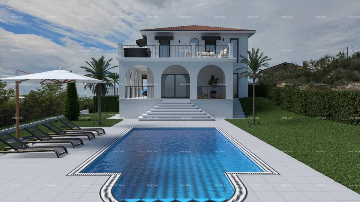 Prodaje se Luksuzna moderna vila s bazenom na iznimno atraktivnoj lokaciji u mirnom naselju, Buje, s panoramskim pogledom na more i maslinike.