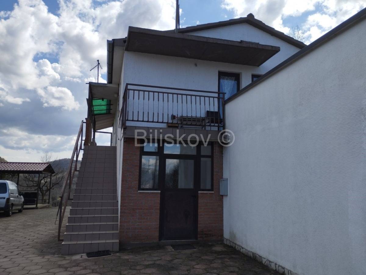 Sastoji se od dva dijela, a ukupna tlocrtna površina kuće je 145m2, plus garaža površine 31m2 iznad koje je terasa. Prvi dio kuće je građen 1980.godine, a drugi 1997.