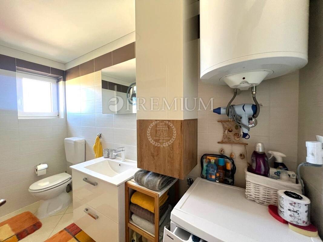 Apartman je uredno održavan te opremljen PVC stolarijom, kvalitetnim namještajem rađenim po mjeri, protuprovalnim vratima i SAT TV-om. Grijanje je omogućeno putem peći na pelete i klima uređaja, što omogućuje ugodan boravak tijekom cijele godine.