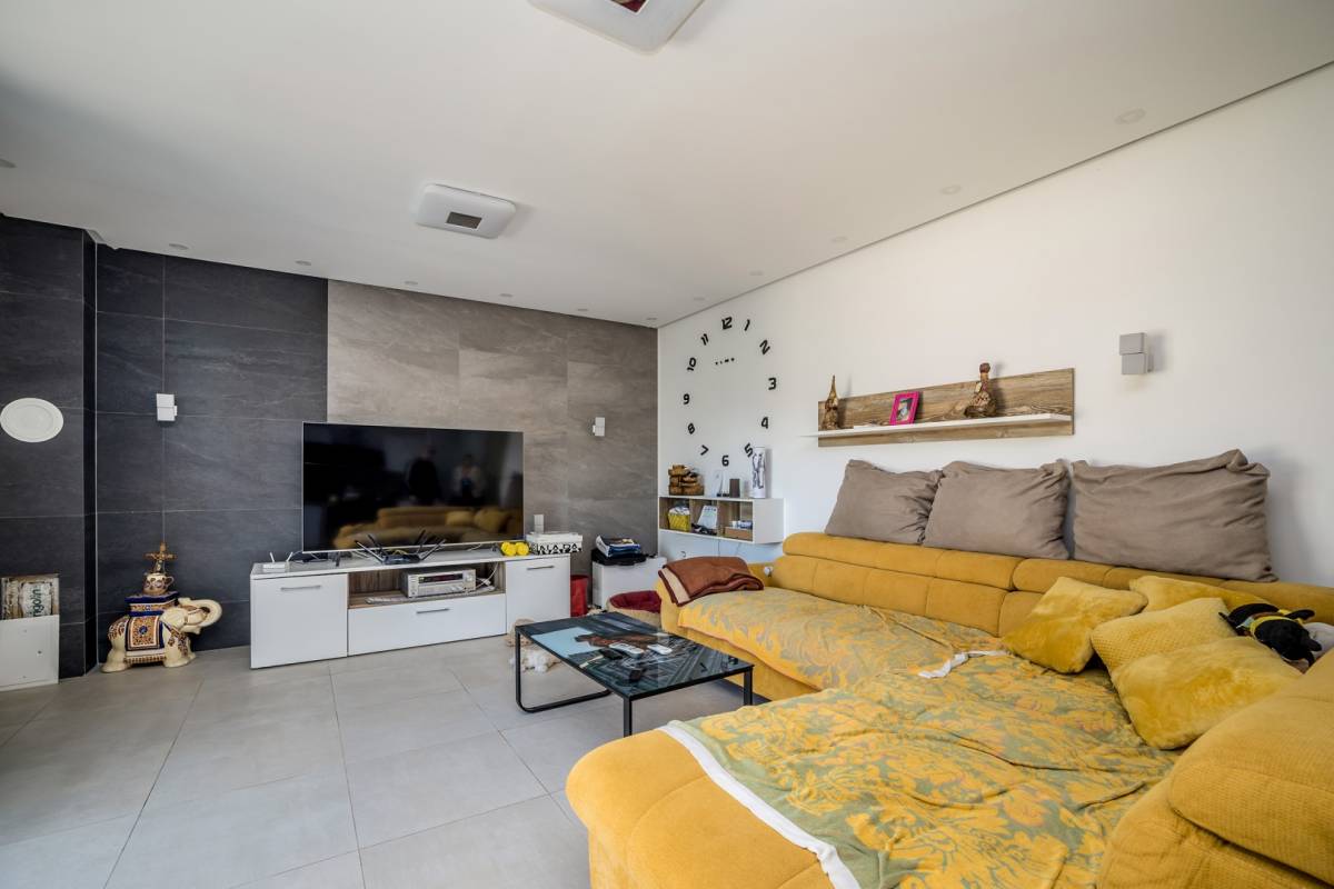 Na prvom katu nalazi se prostrani trosobni apartman s dnevnim boravkom, potpuno opremljenom kuhinjom, dvije kupaonice i velikom terasom s pogledom prema moru. Na posljednjoj etaži smještene su još dvije stambene jedinice, svaka s dvije spavaće sobe – idealne za goste ili najam.