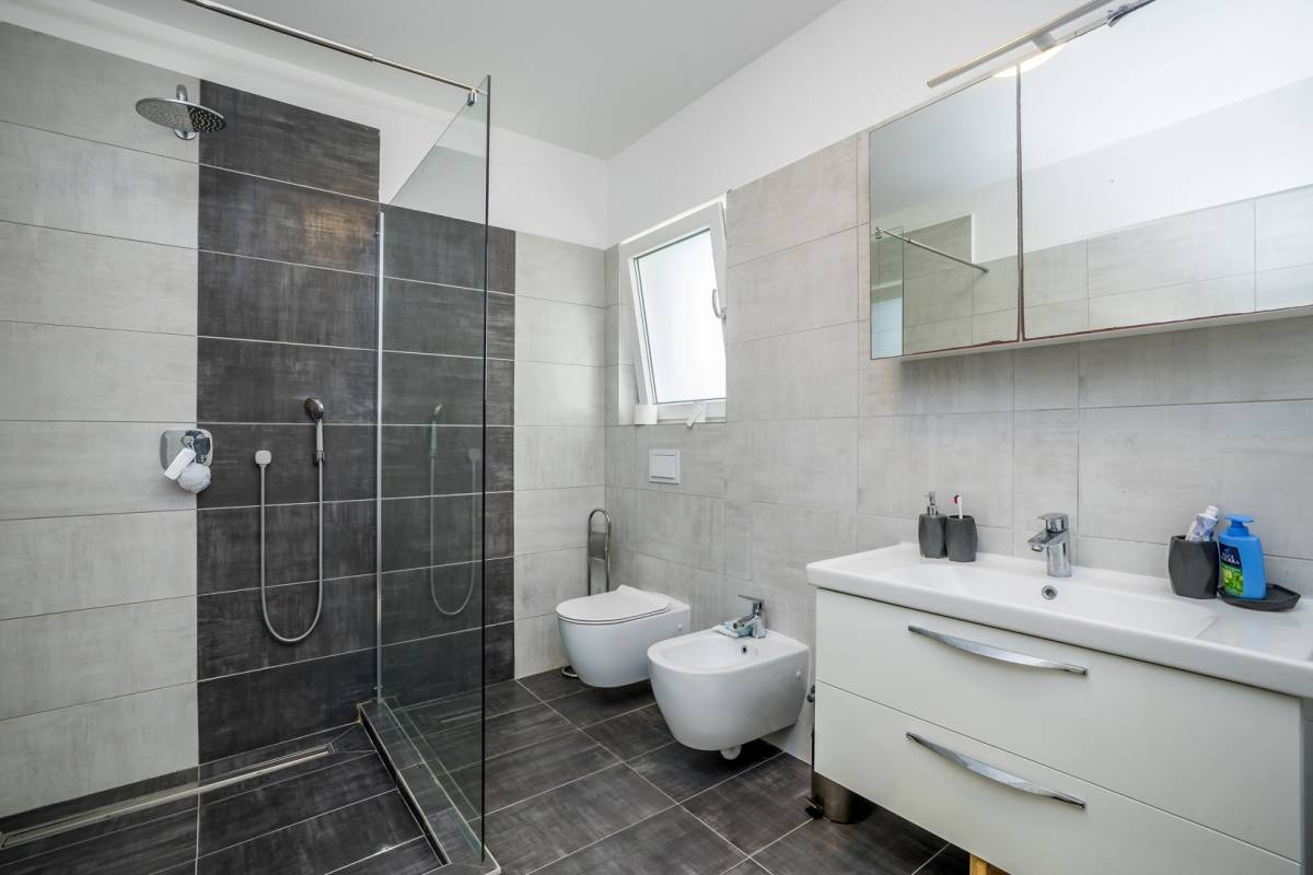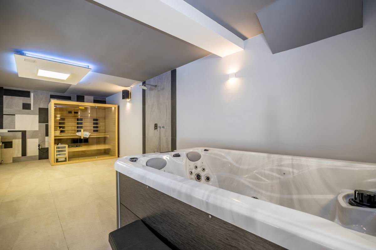 Vila se prostire na tri etaže. U prizemlju se nalazi cijela etaža posvećena wellnessu s grijanim zatvorenim bazenom, jacuzzijem, saunom i moderno uređenim kupatilom – savršeno za korištenje tijekom cijele godine.
