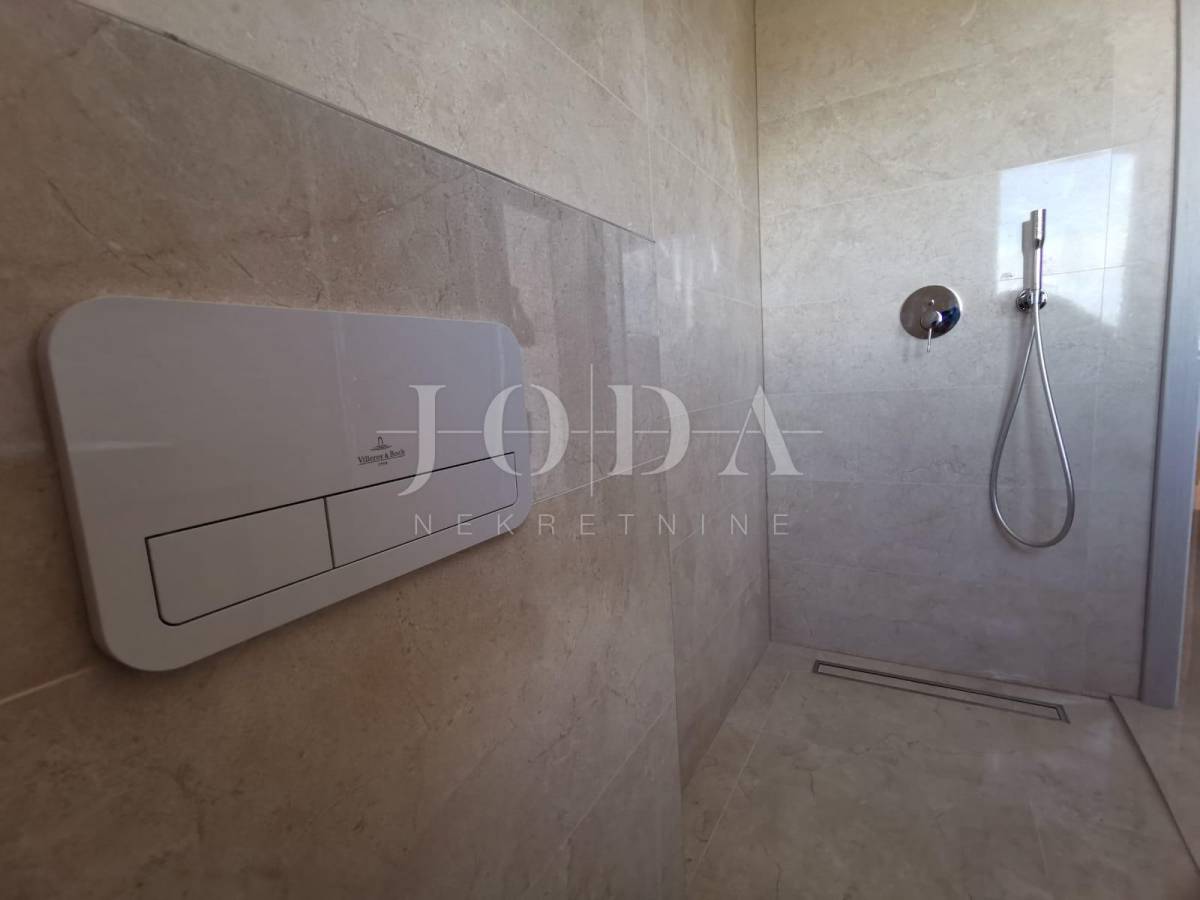 Samo najkvalitetnija oprema ugrađivana je u stan. Podovi u dnevnoj sobi i u spavaćim sobama su od prvoklasnog hrastovog višeslojnog parketa. Keramika u kupaonicama i hodnicima je prvoklasna talijanska keramika velikog formata, ponegdje sa reljefnom obradom. Kupaonska slavina i tuš ruža, slušalica i baterija su GROHE linija Essence, sa podžbuknom montažom. Umivaonik je Villeroy-Boch, WC školjka je Villeroy-Boch slim line, bez ruba sa direct flush ispiranjem i slim sporospuštajućom daskom. Vodokotlići su također Villeroy-Boch. Kupaonice su opremljene el. podnim grijanjem. Vanjska stolarja je drvo-aluminij, velikih formata. Dvije spavaće sobe opremljene su polu francuskim otvorima dimenzija 180 x 170 cm i pružaju nevjerojatan pogled čak i dok ležite u krevetu. Dnevni boravak ima staklenu stijenu dimenzija 320 x 240 cm. Sva električna instalacije je Panasonic, a u svim sobama izvedena je instalacija interneta i SAT TV. Spavaće sobe su opremljene sa u prosjeku 9 el. izlaza-ulaza kao visoki hotelski standard. Svaka soba je klimatizirana. Unutarnja sobna vrata su slovenski proizvod Lip Bled sa uzorkom Arctic hrast 3D CPL, dodatno zvučno