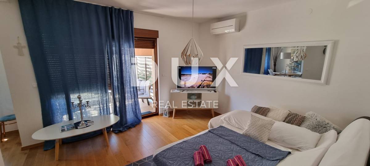 Stan je u potpunosti renoviran 2023. godine uz korištenje vrhunskih materijala i opremljen je namještajem izrađenim po mjeri, osiguravajući maksimalnu funkcionalnost i moderan dizajn. Njegov besprijekoran interijer odiše stilom i elegancijom, što ga čini spremnim za useljenje ili nastavak turističkog iznajmljivanja. Kao apartman, stan je dosad uživao veliku popularnost, s izvrsnim povratom na investiciju – idealna prilika za one koji traže nekretninu s dodatnim prihodima.