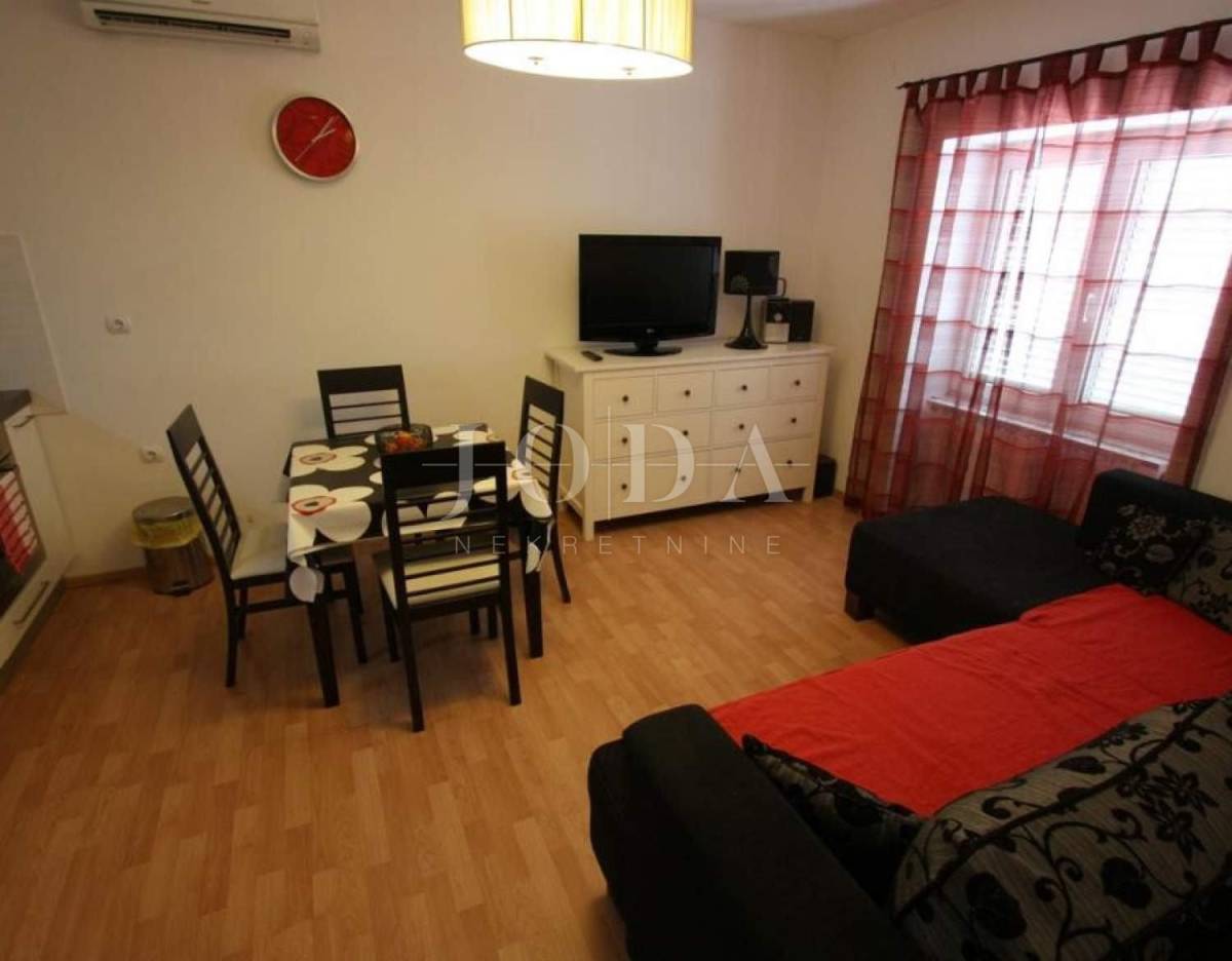 Prodaje se apartman u prvom redu do mora, smješten na drugom katu zgrade. Apartman se sastoji od sobe, kuhinje s dnevnim boravkom, kupaonice, ostave i hodnika, a ukupna površina stana iznosi 34,48 m².