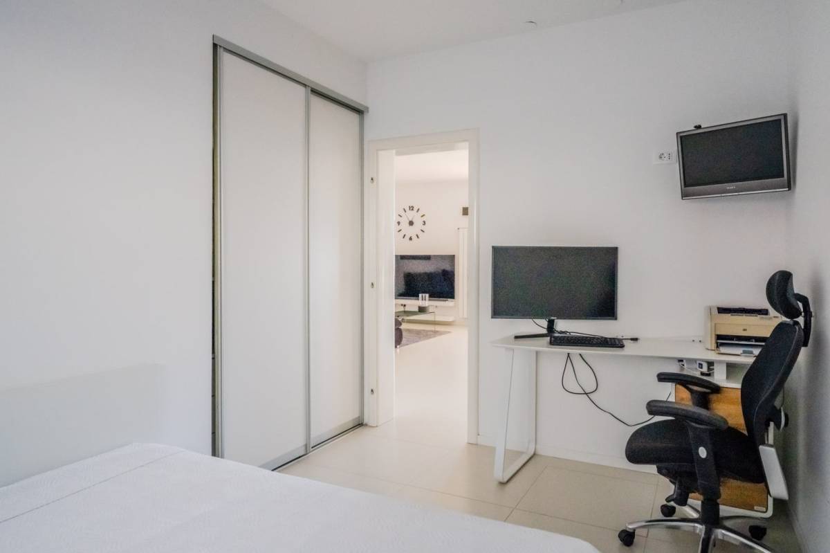 Raspored je podređen svakodnevnom korištenju, ne samo najmu. U prizemlju je apartman kategoriziran s pet zvjezdica i koristi se za goste, dok je na prvom katu odvojen stan s dvije spavaće sobe i dnevnim boravkom koji omogućuje normalan život bez miješanja s turistima. Na drugom katu nalaze se garsonijera i dodatni dvosoban stan, oba s velikim terasama i otvorenim pogledom na more. Takva podjela znači da vlasnik može birati kako koristiti kuću, sezonski ili cijele godine, bez potrebe za prilagodbama.