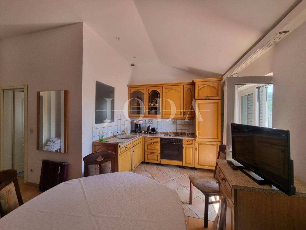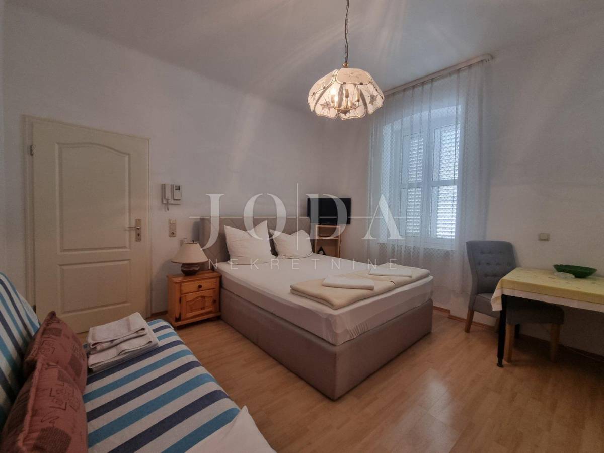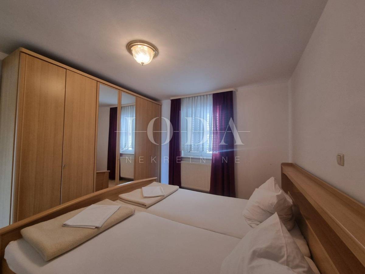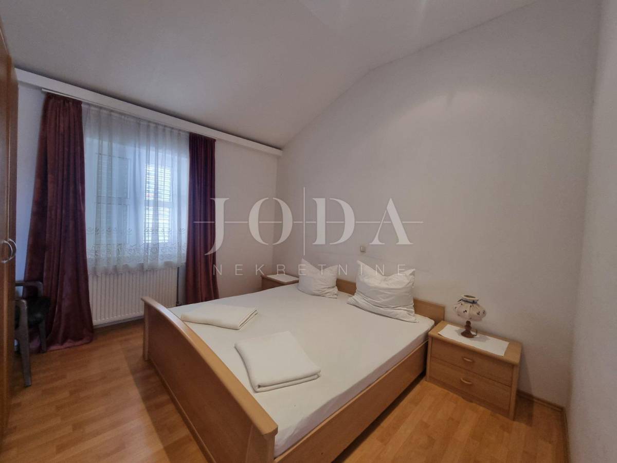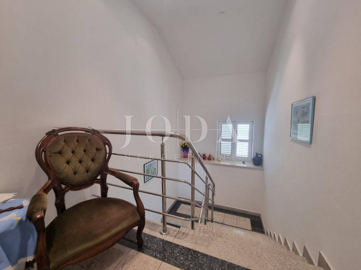 Na prvom katu nalazi se dvosobni aprtman od 53,93m, te jednosobni stan od 50m2 sa pripadajućim balkonom i terasom. U prizemlju kuće nalaze se dva spremište, vrt i terasa. Svi aprtmani su klimatizirani i namješteni te spremni u potpunosti za upotrebu. Unutar okučnice nalazi se garaža. Nekretnina za investiciju!