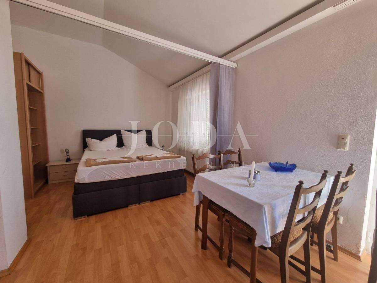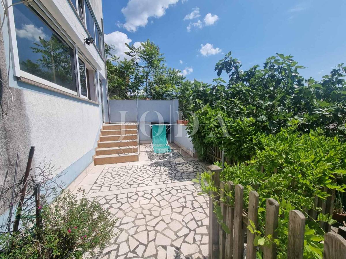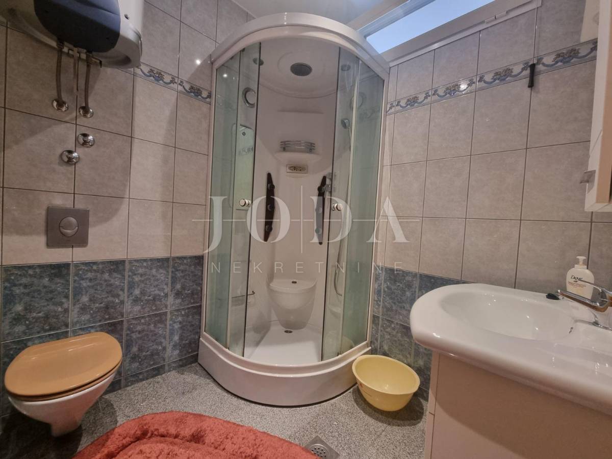 Na prvom katu nalazi se dvosobni aprtman od 53,93m, te jednosobni stan od 50m2 sa pripadajućim balkonom i terasom. U prizemlju kuće nalaze se dva spremište, vrt i terasa. Svi aprtmani su klimatizirani i namješteni te spremni u potpunosti za upotrebu. Unutar okučnice nalazi se garaža. Nekretnina za investiciju!