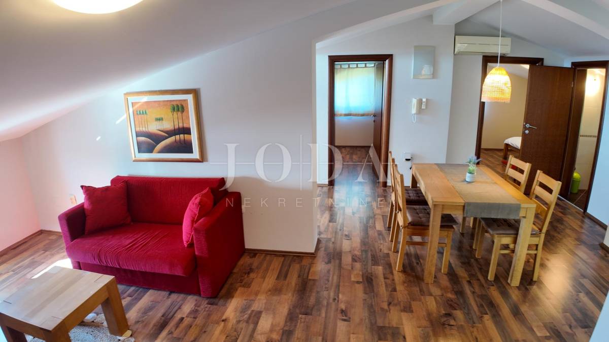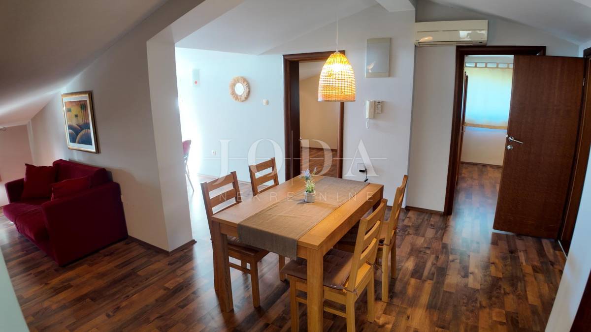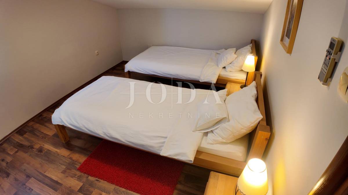 Dvije spavaće sobe,kuhinja i dnevni boravak otvorenog koncepta,kupaonica,čine interijer stana koji je potpuno opremljen i namješten te se kao takav i prodaje.