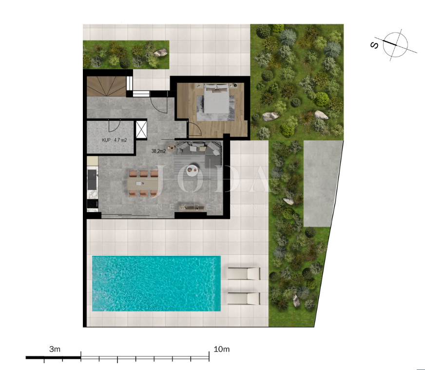 Sobe okupane svjetlošću impresioniraju svojim elegantnim dizajnom, toplim prirodnim tonovima i puno pažnje posvećene detaljima. Prozori od poda do stropa