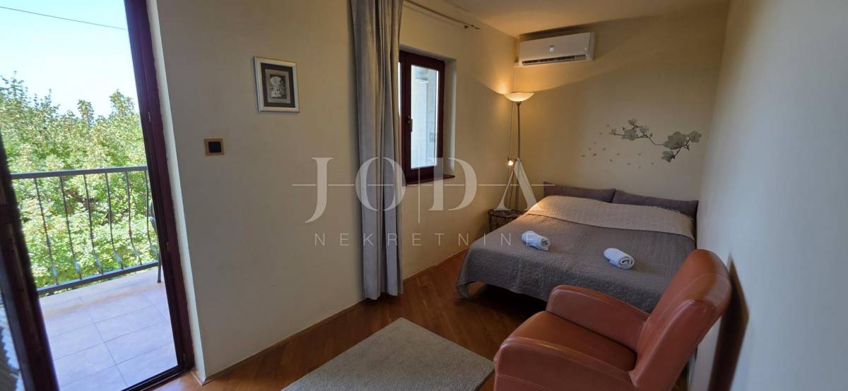 Na povišenom i mirnom dijelu Crikvenice, daleko od gradske gužve, smjestila se ova samostojeća kuća s impresivnim panoramskim pogledom na more. Kuća se nalazi na iznimno velikoj i jedinstvenoj parceli, što je čini pravom rijetkošću na tržištu. Osim što pruža potpunu privatnost, parcela nudi brojne mogućnosti za dodatne sadržaje – poput bazena, sunčališta, vanjske kuhinje ili dodatnih smještajnih jedinica, što otvara velik potencijal za osobnu upotrebu ili dodatni turistički razvoj. Sama kuća prostire se na tri etaže koje su međusobno povezane unutarnjim i vanjskim stepenicama. U prizemlju se nalazi prostrani dnevni boravak i kupaonica, dok prvi kat nudi tri klimatizirane spavaće sobe i dodatnu kupaonicu. Na drugom katu nalazi se još jedan dnevni boravak s kuhinjom i blagovaonicom, kupaonica i dvije spavaće sobe, što omogućuje odvojen životni prostor za veću obitelj ili više gostiju. Nekretnina već ima uhodani turistički najam s izvrsnim povratnim informacijama gostiju, što novom vlasniku omogućuje sigurnu i brzu investiciju. Ovo je savršena prilika za one koji traže prostranu kuću s pogledom na more, privatnost, potencijal za dodatni sadržaj i stabilan prihod kroz turizam – sve to na jednoj od najpoželjnijih lokacija u Crikvenici.