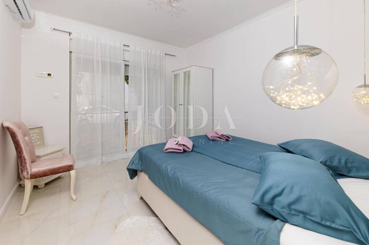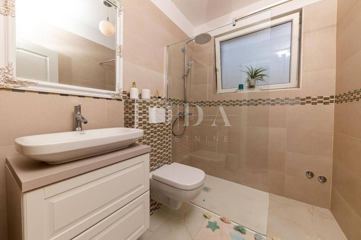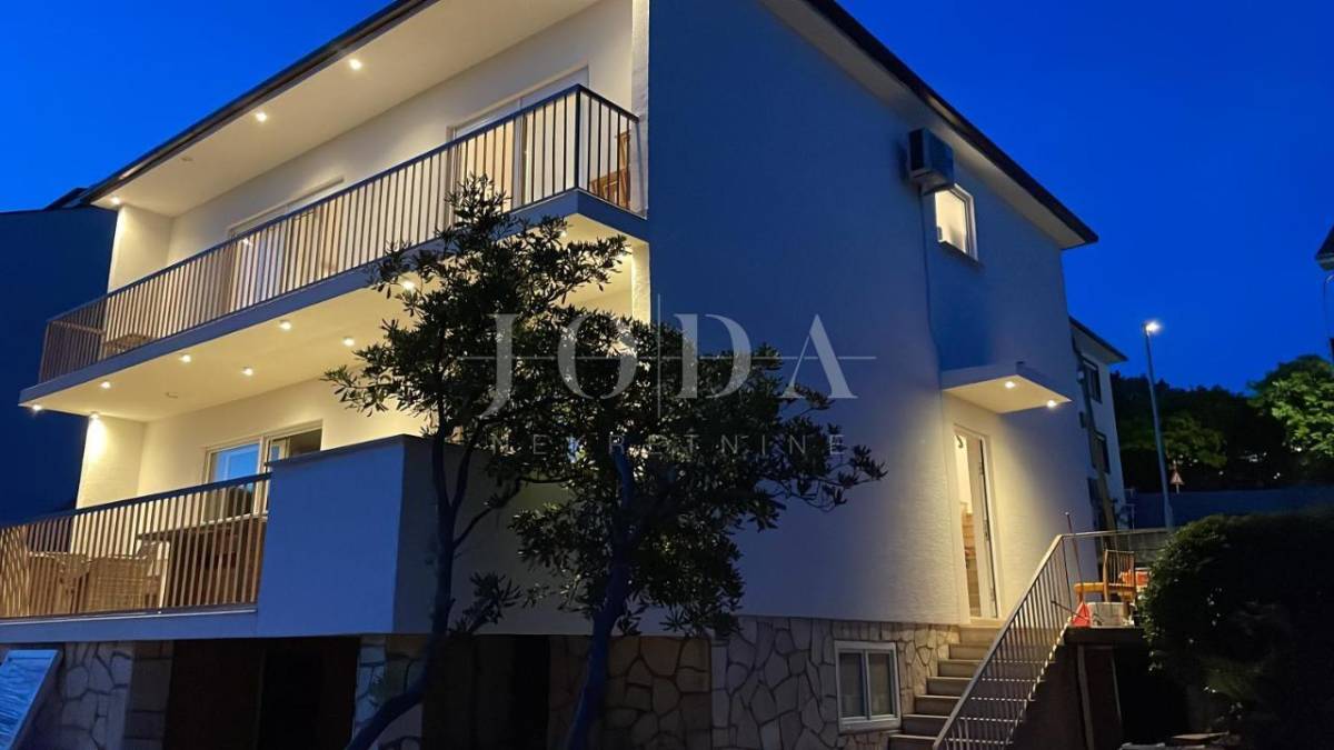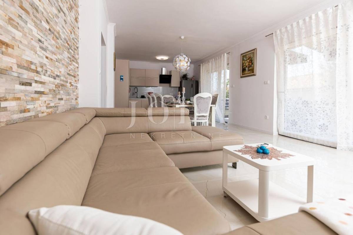 Prodajemo samostojeću kuću na parceli od 562m2 u potpunosti adaptirana 2022. godine. Kuća se sastoji do prizemlja i kata. U prizemlju se nalazi kuhinja sa blagovaonom, dnevni boravak, jedna spavaća soba, hodnik, kupaona i prostrana terasa sa koje se pruža pogled na more. Unutarnjim stepenicma ide se na kat gdje de nalaze tri spavaće sobe i dvije kupaone te balkon cijelom dužinom kuće sa koje se također pruža divan pogled na more. Unutar ograđene i uređene okućnice nalaze se četiri parkirna mjesta, vrt te paviljon sa roštiljem. Kuća je kompletno namještena i klimatizirana i kao takva se i prodaje. Odlična nekretnina za život ili turistički najam.