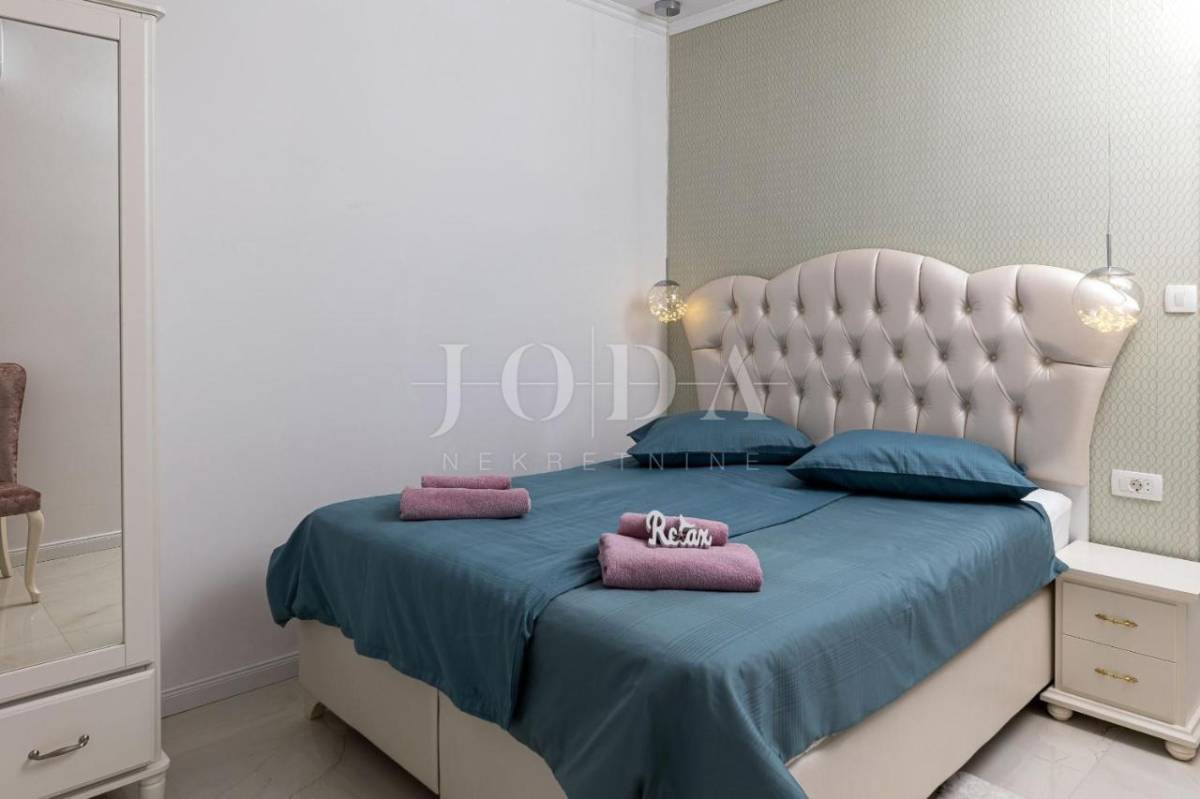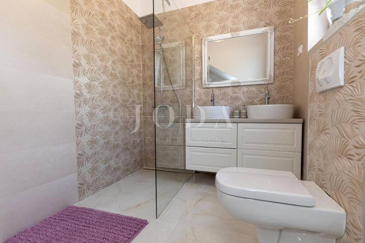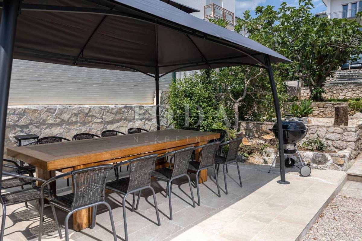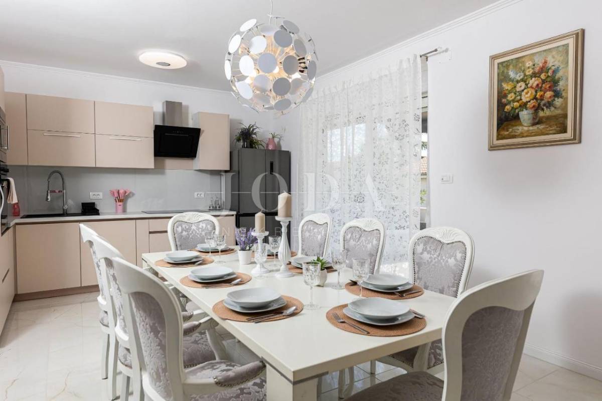 Prodajemo samostojeću kuću na parceli od 562m2 u potpunosti adaptirana 2022. godine. Kuća se sastoji do prizemlja i kata. U prizemlju se nalazi kuhinja sa blagovaonom, dnevni boravak, jedna spavaća soba, hodnik, kupaona i prostrana terasa sa koje se pruža pogled na more. Unutarnjim stepenicma ide se na kat gdje de nalaze tri spavaće sobe i dvije kupaone te balkon cijelom dužinom kuće sa koje se također pruža divan pogled na more. Unutar ograđene i uređene okućnice nalaze se četiri parkirna mjesta, vrt te paviljon sa roštiljem. Kuća je kompletno namještena i klimatizirana i kao takva se i prodaje. Odlična nekretnina za život ili turistički najam.