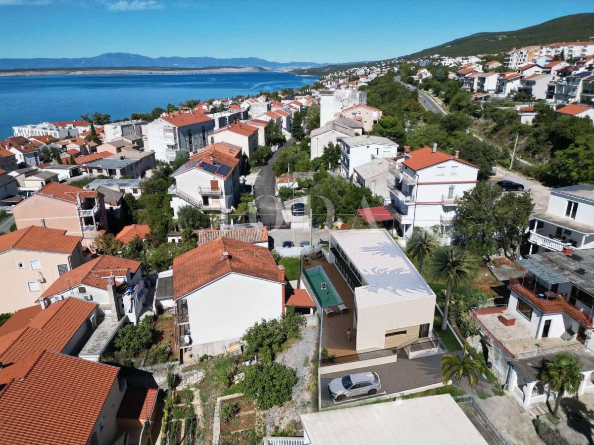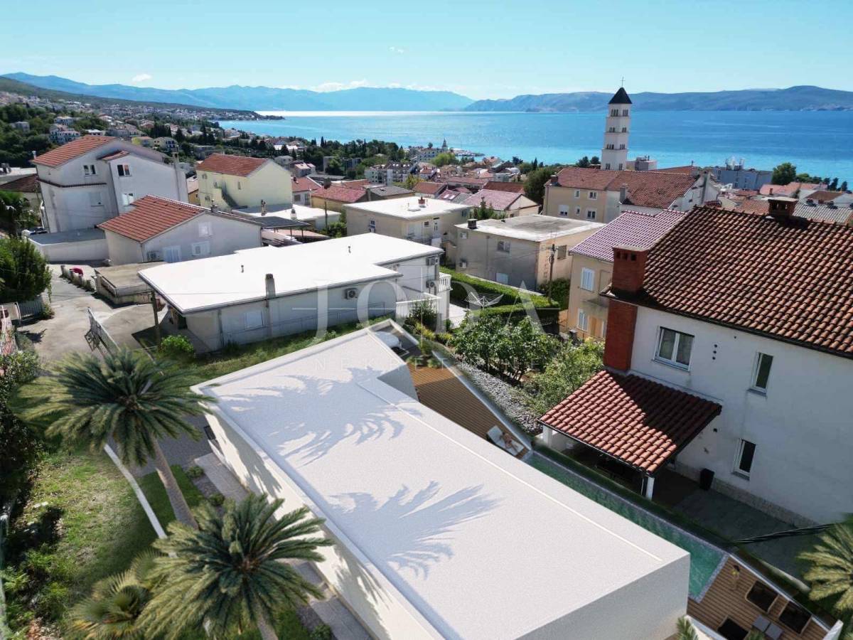 Unutarnje stepenište vodi na kat gdje su tri spavaće sobe sa vlastitim kupaonicama te balkon cijelom južnom dužinom kuće,sa kojega se pruža lijep pogled na more i Crikvenicu.