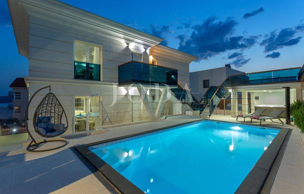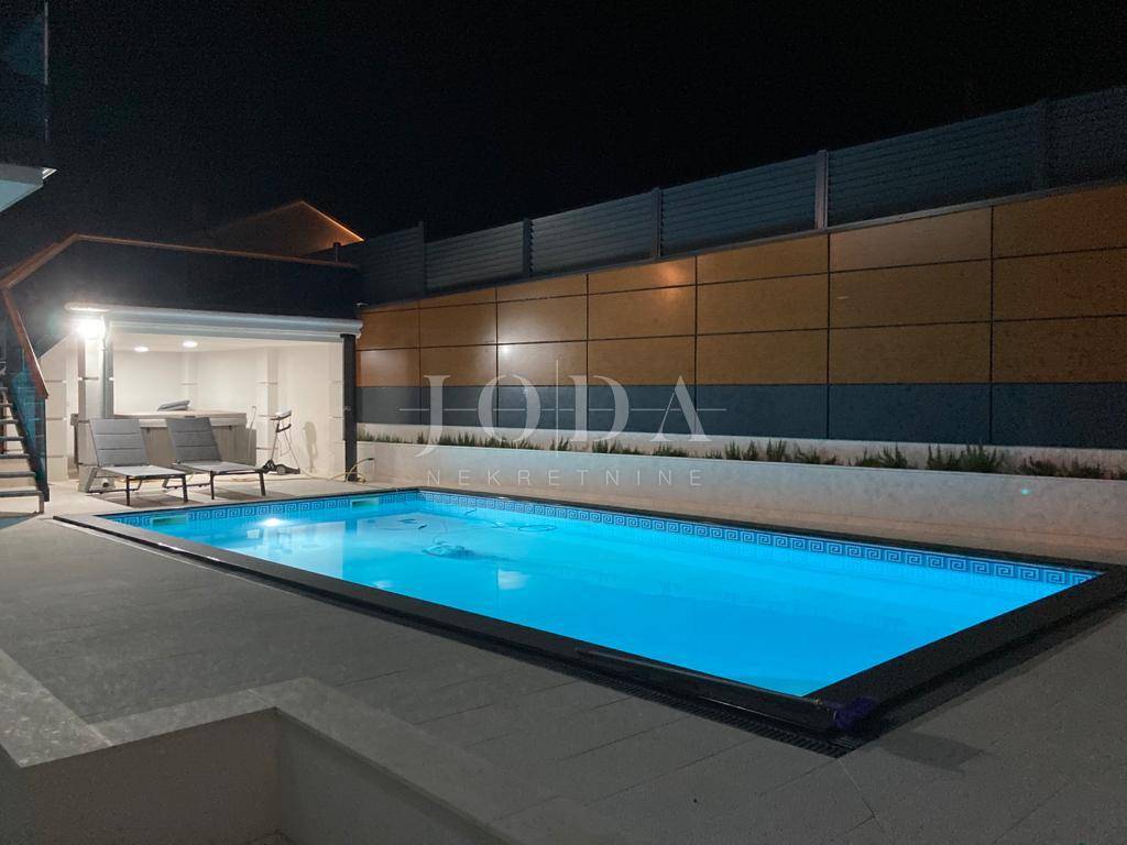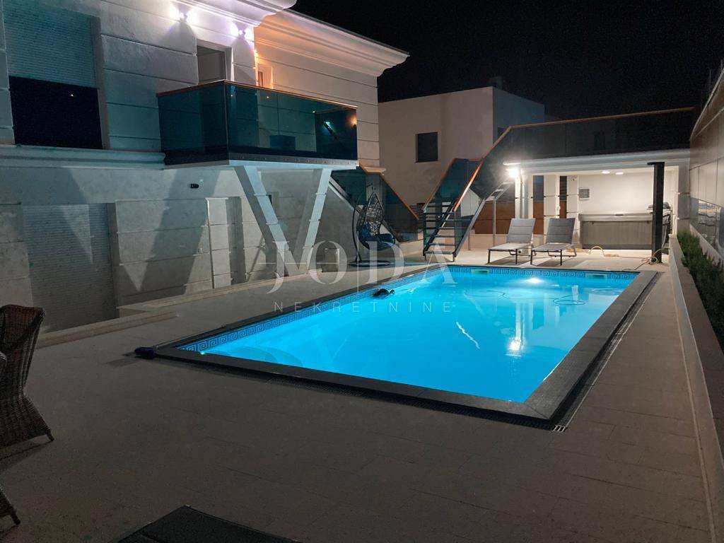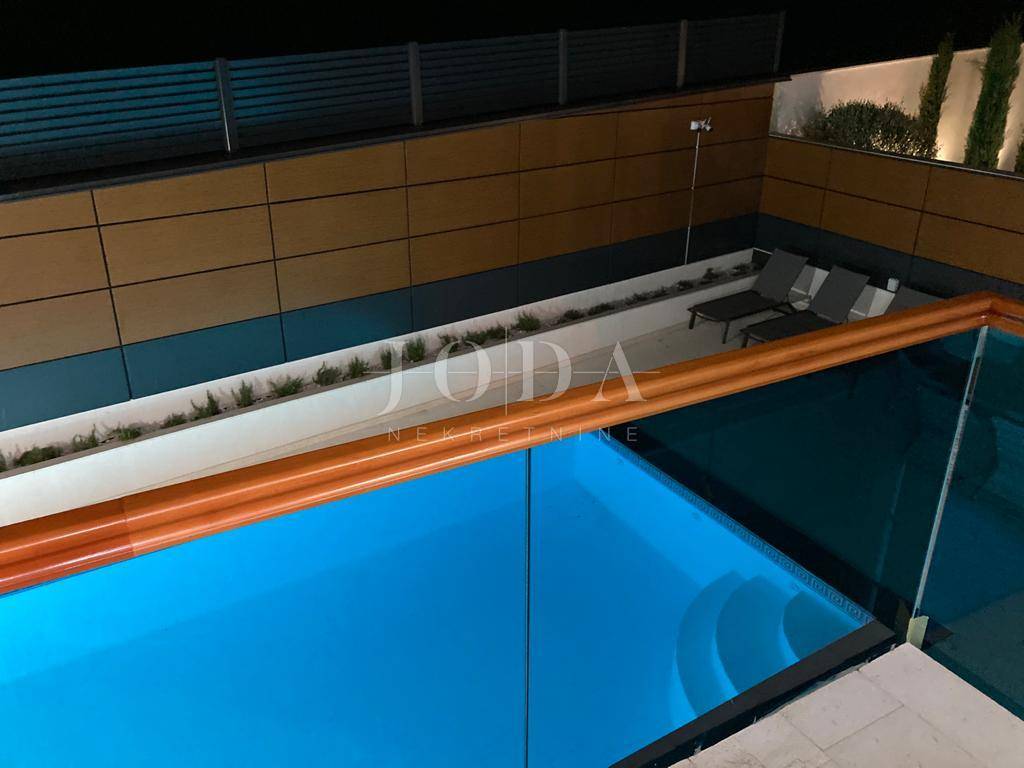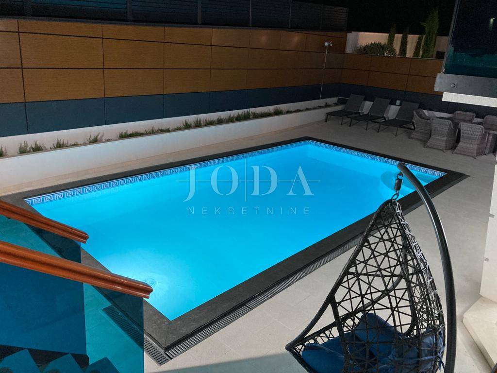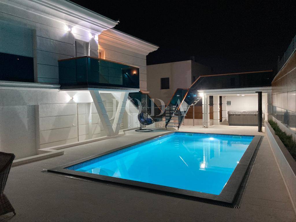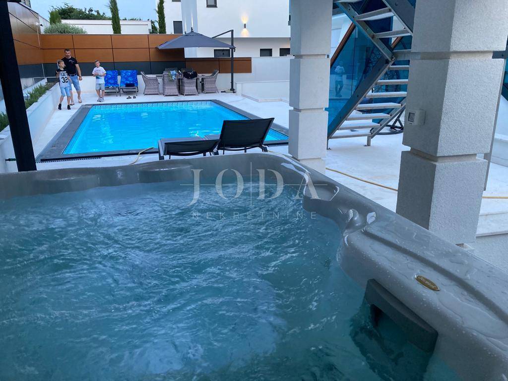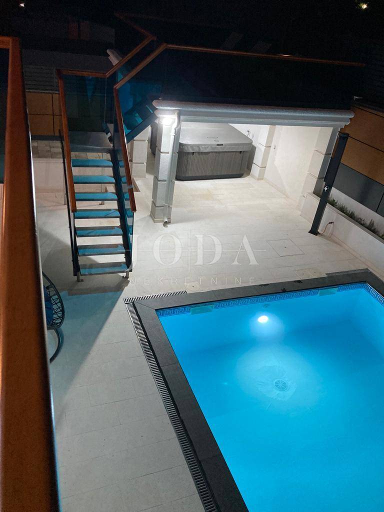 Sa stražnje strane kuće je smješten bazen,sunčalište te jacuzzi.Kuća je potpuno namještena i opremljena visokokvalitetnim materijalima i opremom te dizajniranim namještajem.