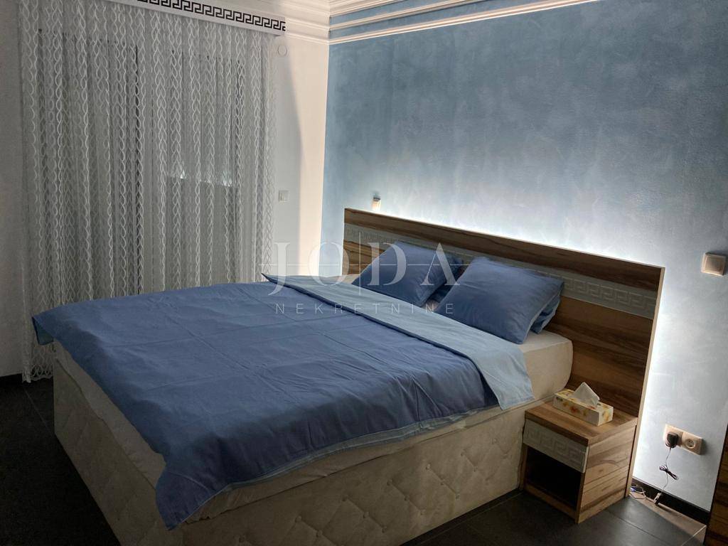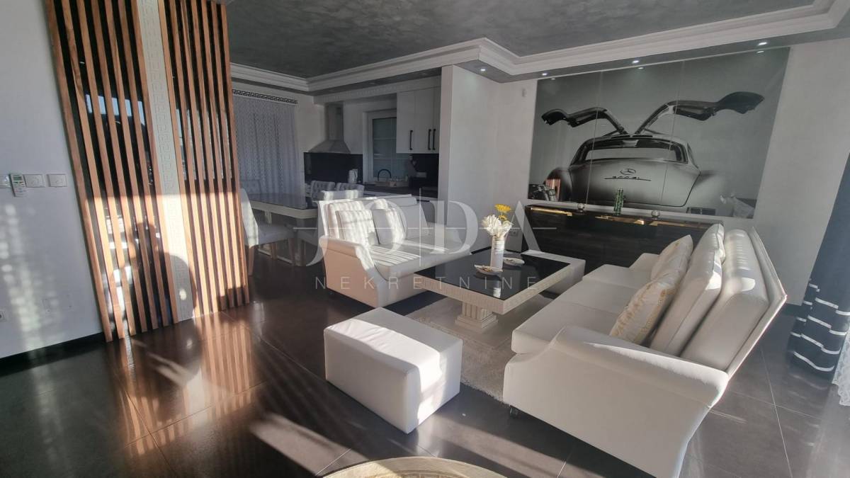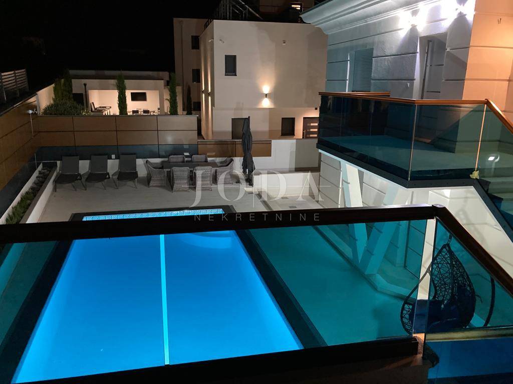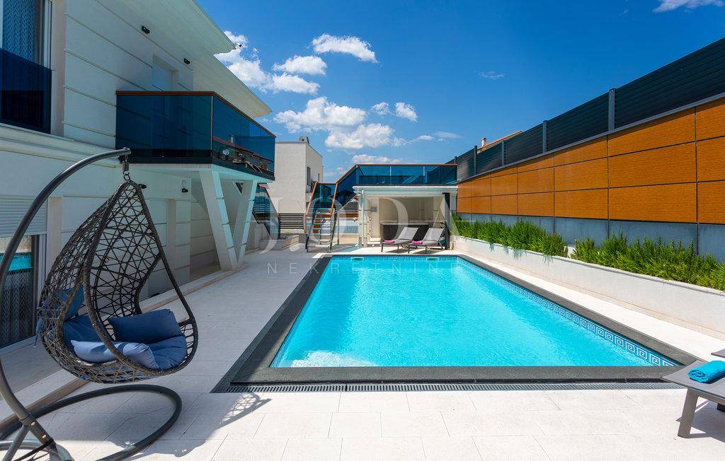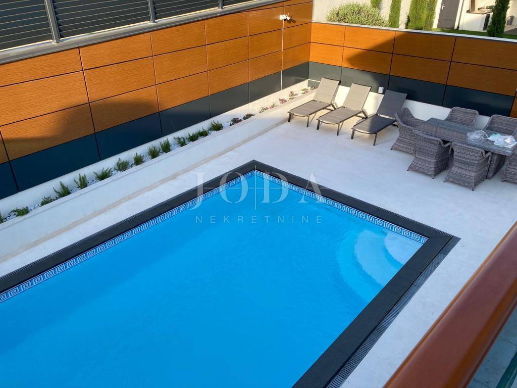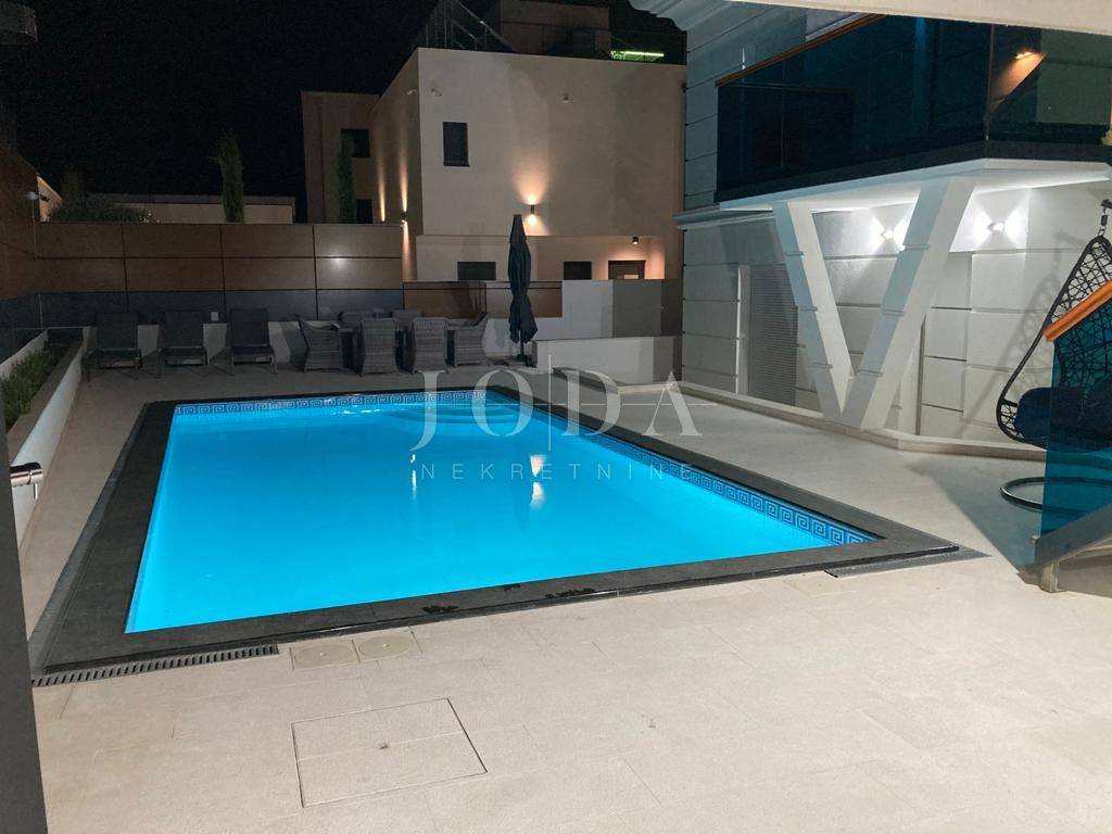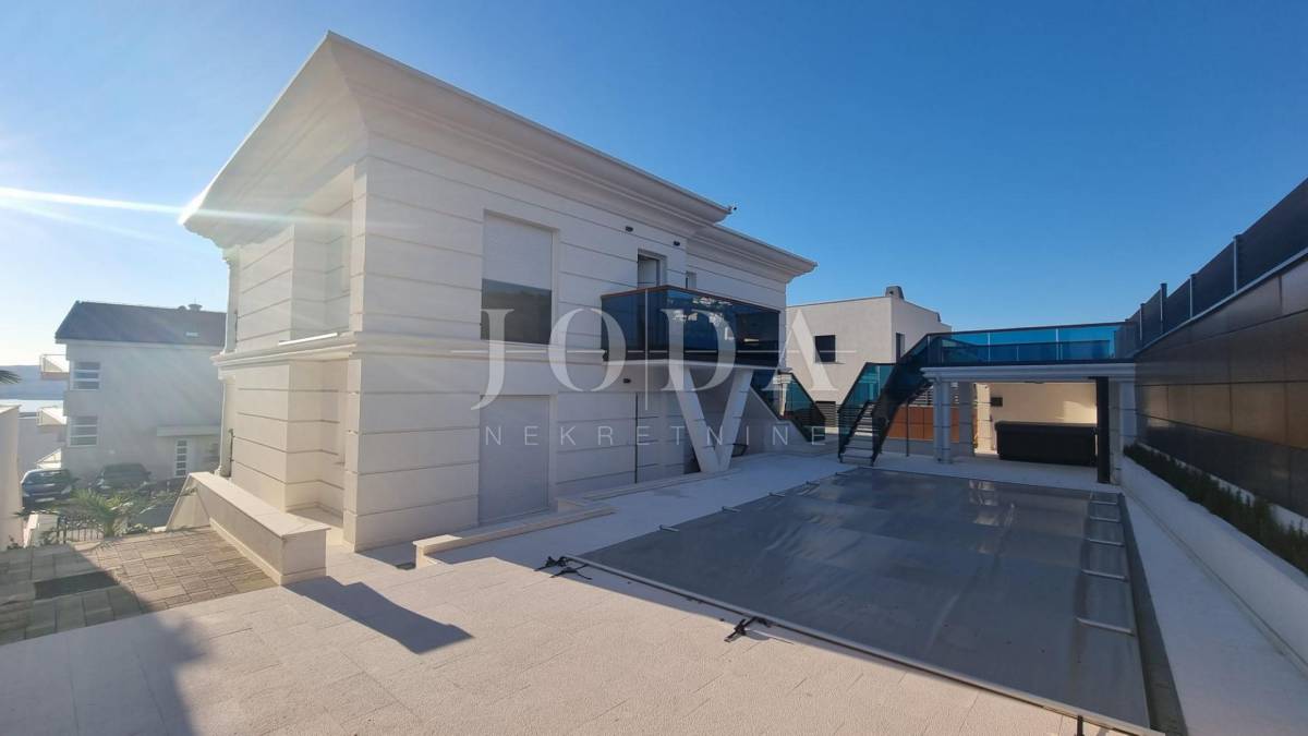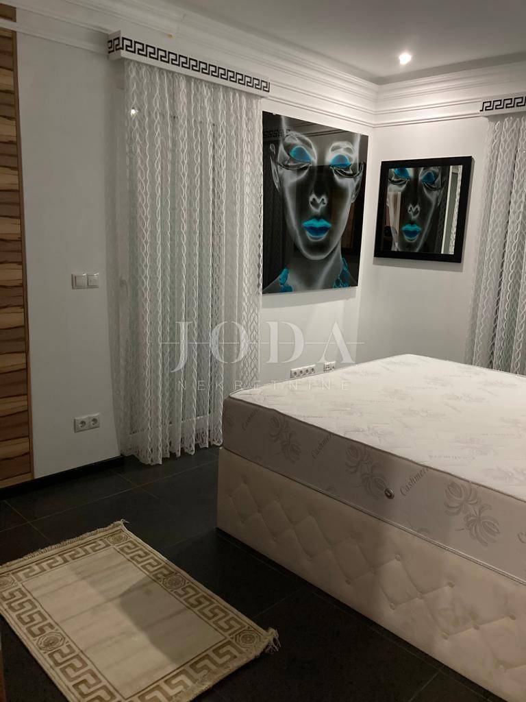 Sa stražnje strane kuće je smješten bazen,sunčalište te jacuzzi.Kuća je potpuno namještena i opremljena visokokvalitetnim materijalima i opremom te dizajniranim namještajem.