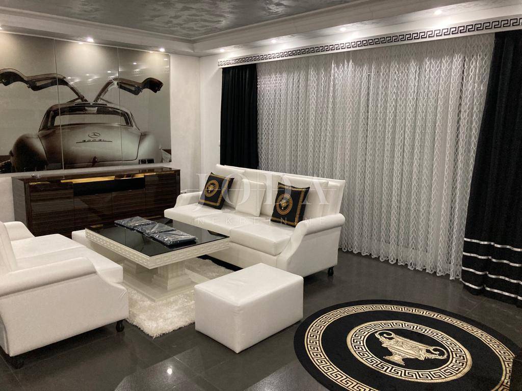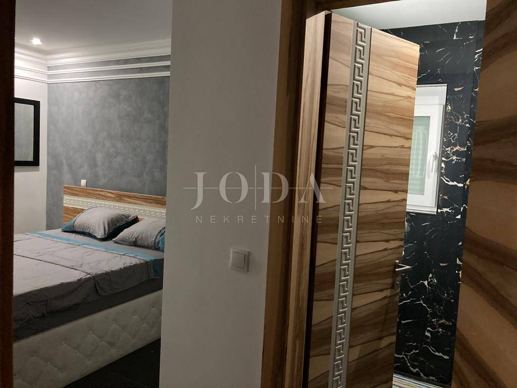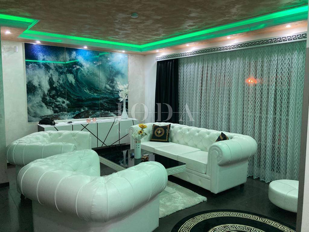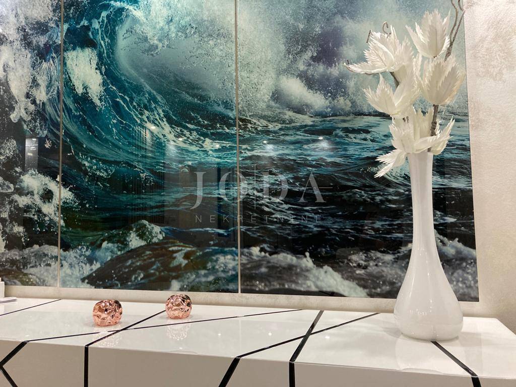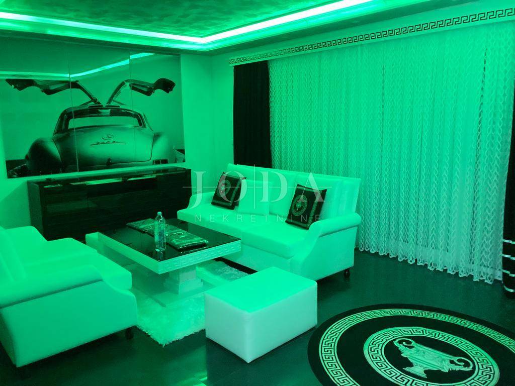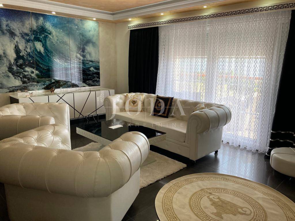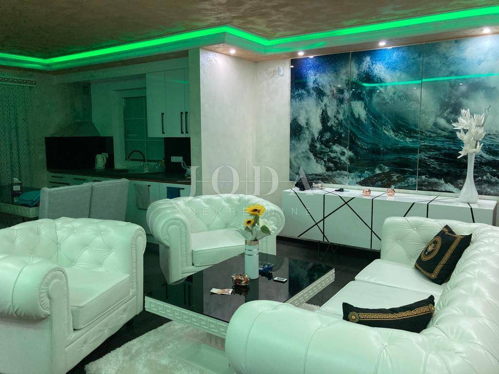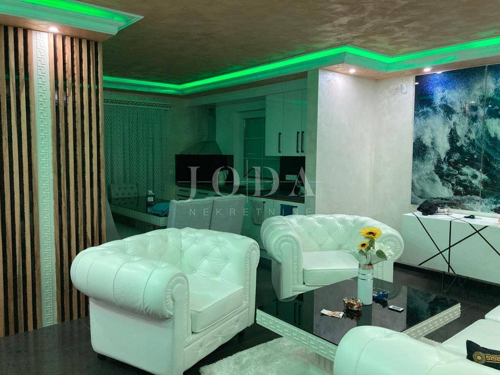 Sa stražnje strane kuće je smješten bazen,sunčalište te jacuzzi.Kuća je potpuno namještena i opremljena visokokvalitetnim materijalima i opremom te dizajniranim namještajem.
