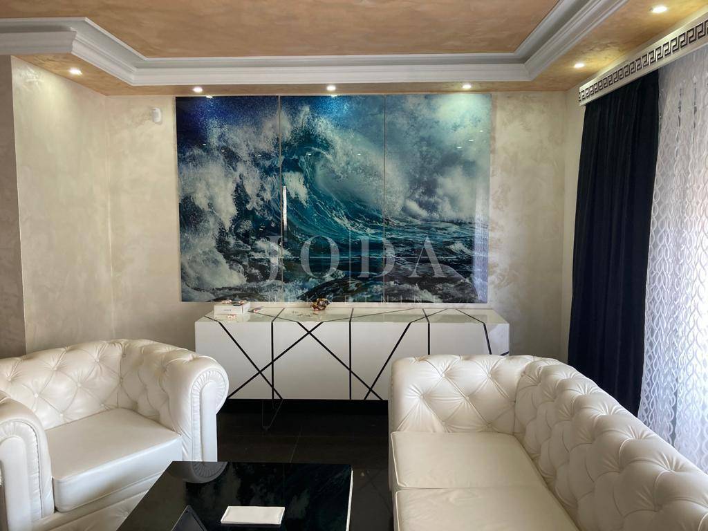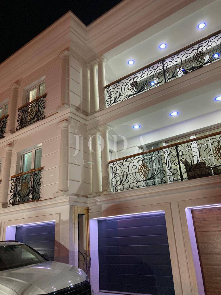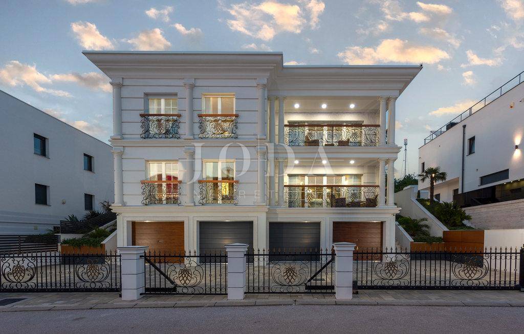 Samostojeća kuća u urbanom dijelu Crikvenice sa 4 garaže i velikim parkirnim prostorom ispred istih.Na prvom i drugom katu su etažni stanovi svaki sa tri spavaće sobe sa kupaonicama te veliki dnevni boravak sa blagavaonicom i izlazom na loggiu.