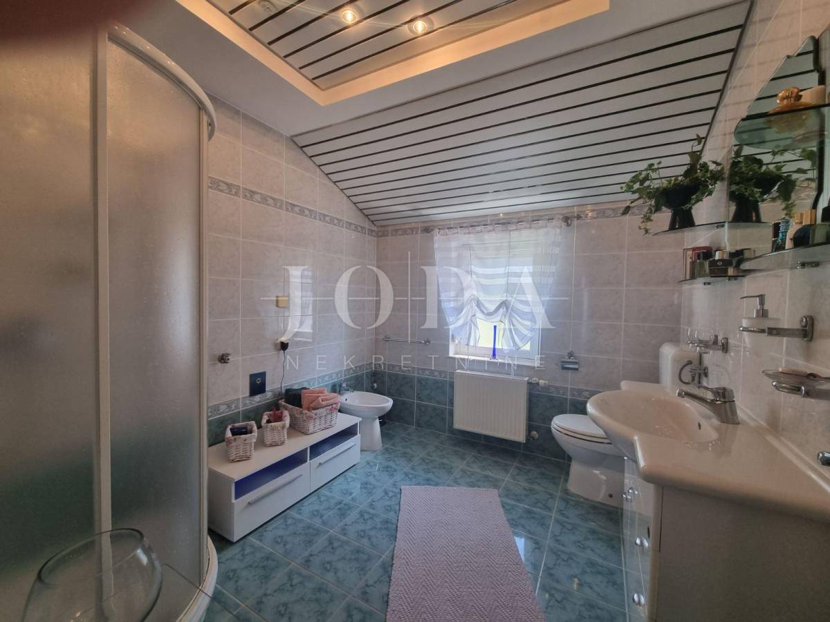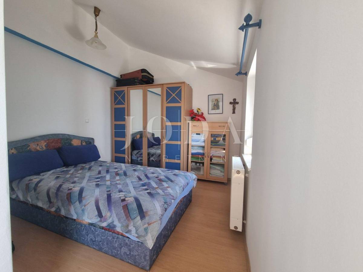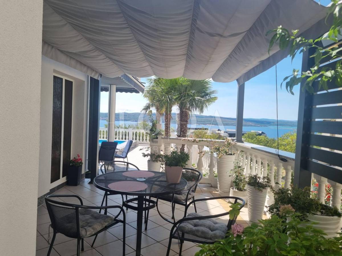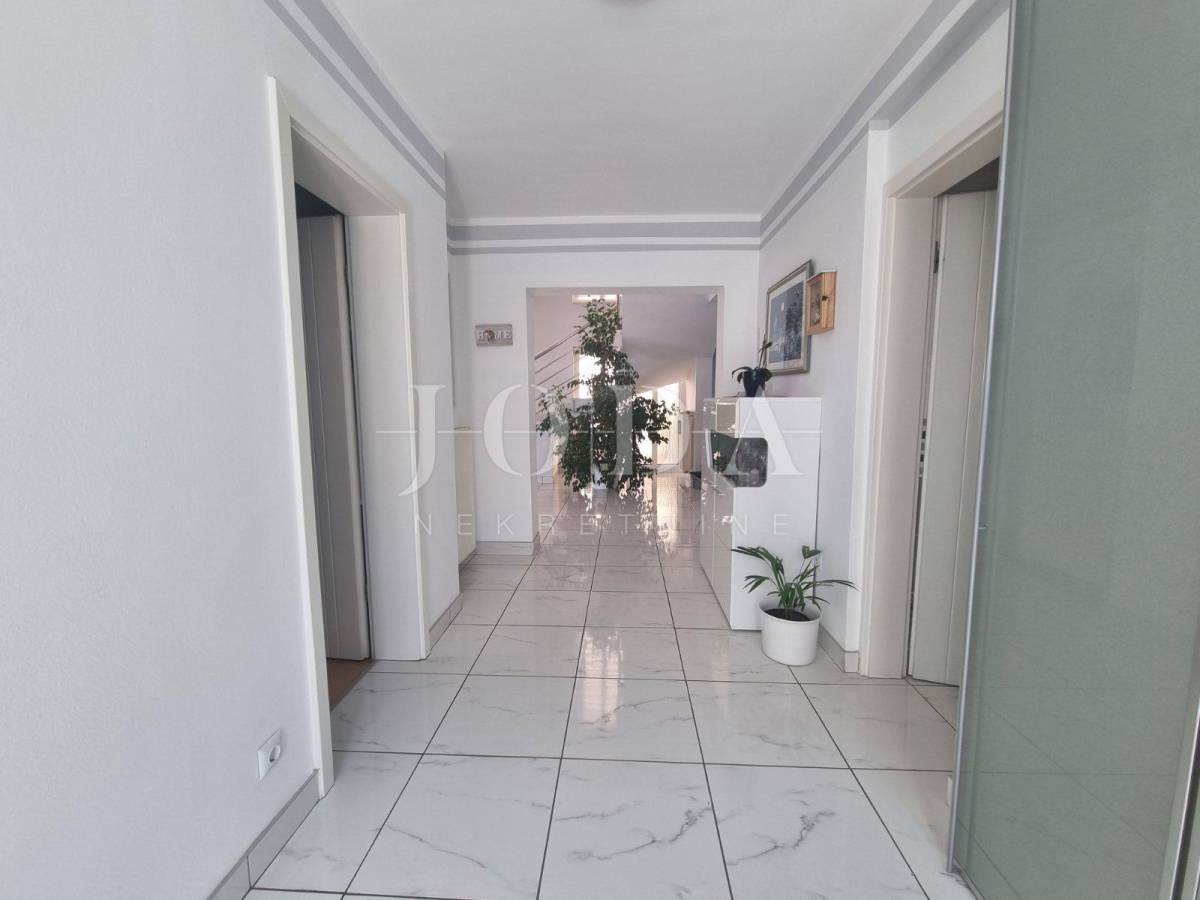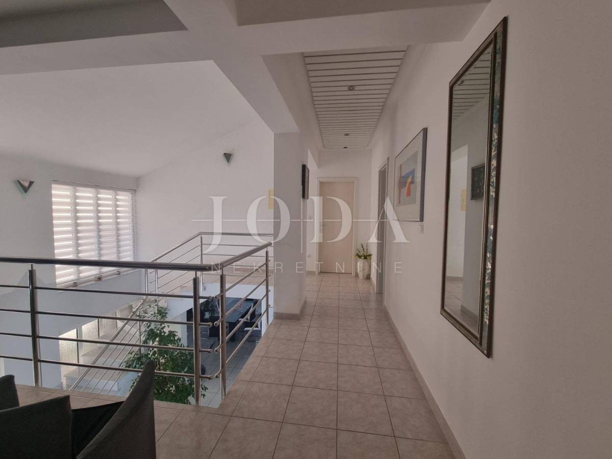 Prodajemo samostojeću kuću sa bazenom i lijepo uređenom okućnicom na parceli od 470m2. Kuća se sastoji od suterena, prizemlja i kata. Iza kuće nalazi se jedan jednosobni aprtman, kotlovnica i pušnica. U suterenu kuće nalaze se dvije garaže i studio apartman. Prizemlje se sastoji od jedne spavaće sobe, kupaone, ulaznog hodnika te prostranog otvorenog prostora (kuhinja, blagovaona i dnevni boravak). Unutranjim stepenicma ide se na kat gdje se nalaze dvije spavaće sobe sa dvije kupaone te prostrani hodnik.Jedna soba ima izlaz na balkon a druga na terasu sa koje se pruža panoramski pogled na more. Unutar okućnice osim bazena sa sunčalištem nalazi se prekrasni vrt sa bočnnom terasom i kaminom. Kuća za život ali i spremna za korištenje u turističke svrhe.