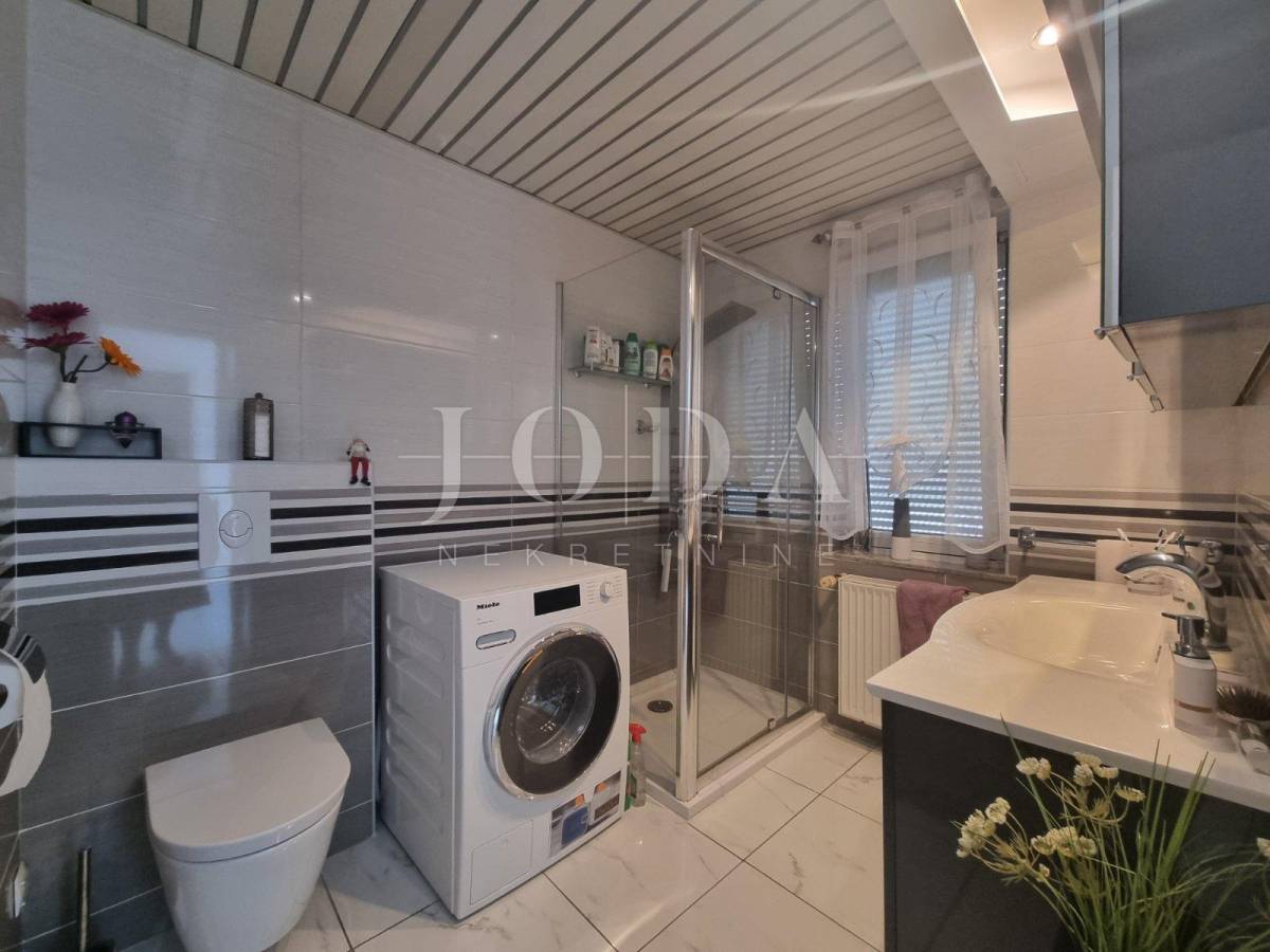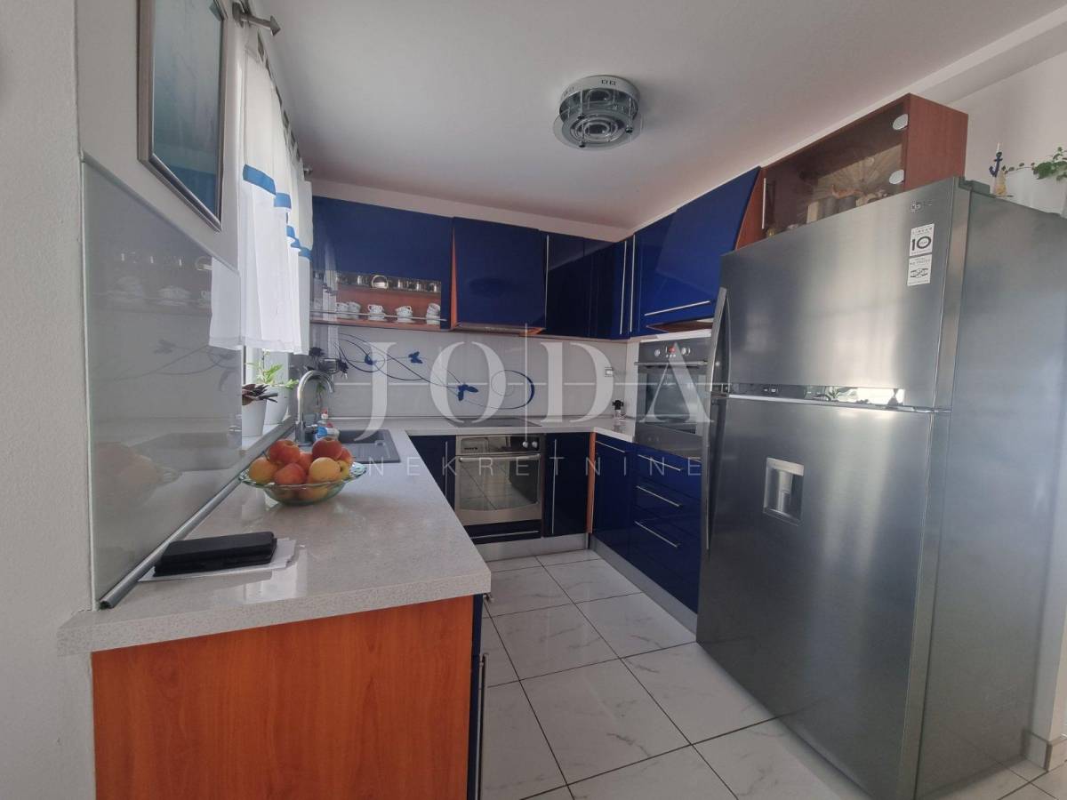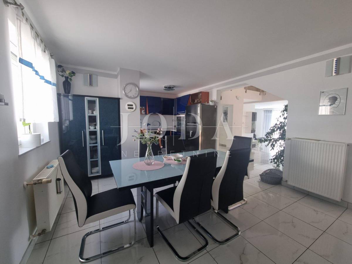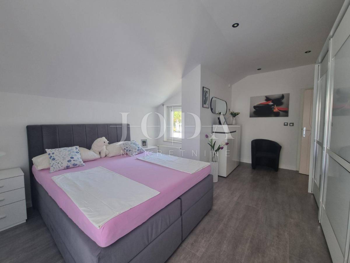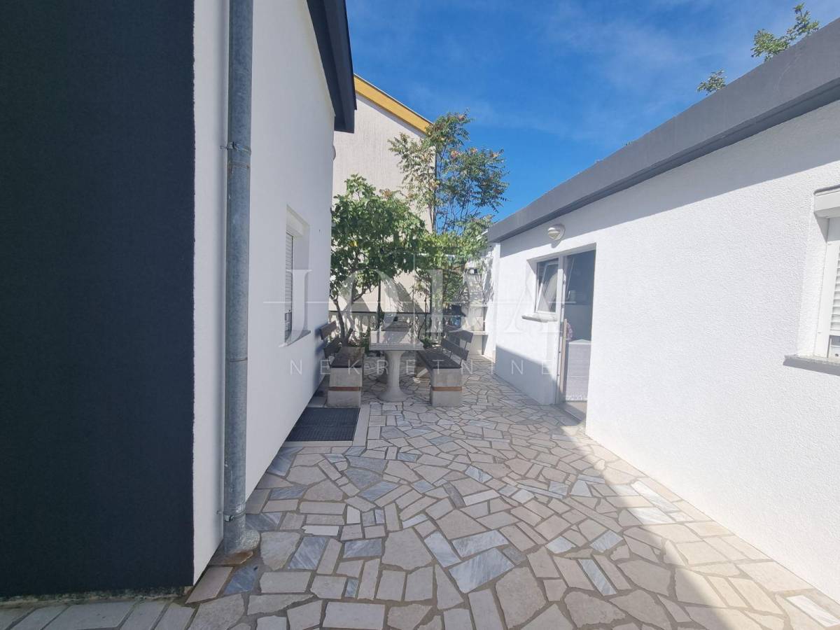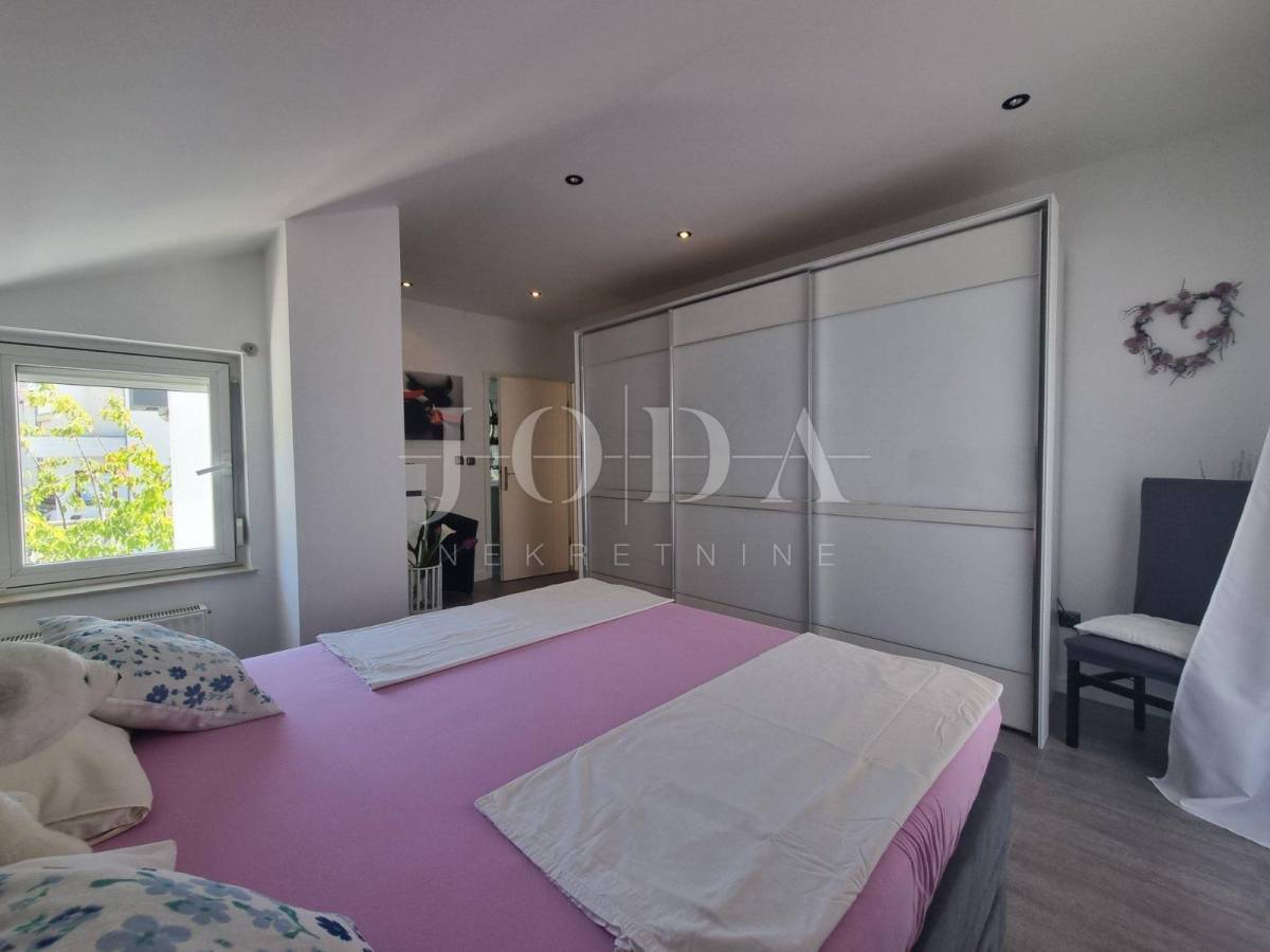 Prodajemo samostojeću kuću sa bazenom i lijepo uređenom okućnicom na parceli od 470m2. Kuća se sastoji od suterena, prizemlja i kata. Iza kuće nalazi se jedan jednosobni aprtman, kotlovnica i pušnica. U suterenu kuće nalaze se dvije garaže i studio apartman. Prizemlje se sastoji od jedne spavaće sobe, kupaone, ulaznog hodnika te prostranog otvorenog prostora (kuhinja, blagovaona i dnevni boravak). Unutranjim stepenicma ide se na kat gdje se nalaze dvije spavaće sobe sa dvije kupaone te prostrani hodnik.Jedna soba ima izlaz na balkon a druga na terasu sa koje se pruža panoramski pogled na more. Unutar okućnice osim bazena sa sunčalištem nalazi se prekrasni vrt sa bočnnom terasom i kaminom. Kuća za život ali i spremna za korištenje u turističke svrhe.