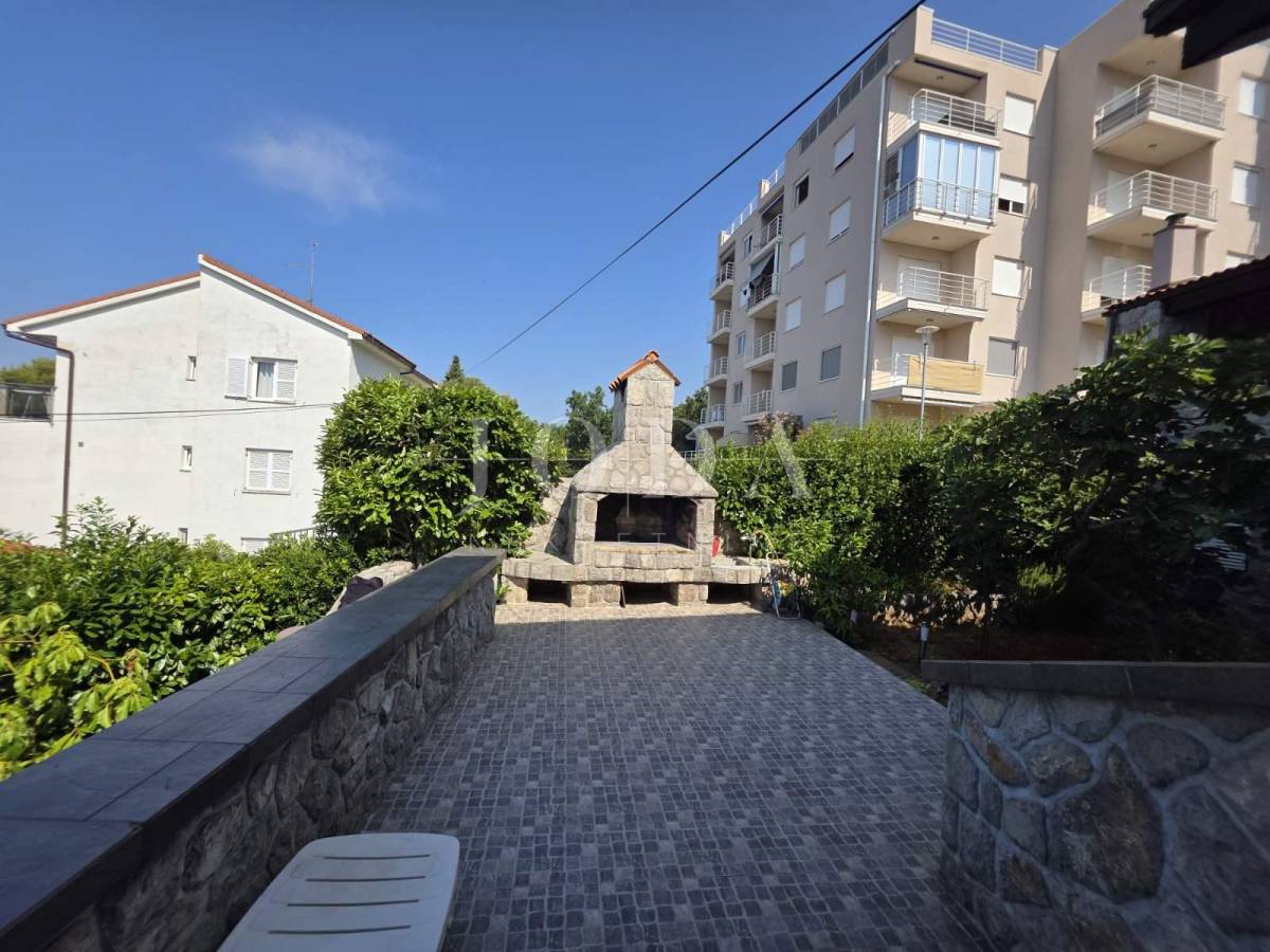 Prodajemo prostranu kuću sa četiri stambene jedinice na vrhunskoj lokaciji na samo 50m od mora. Kuća je okružena velikim terasama sa kojih se pruža prekrasan pogled na more. Nekiretnina se sastoji od suterena, prizemlja i kata. U suterenu se nalazi jednosobni stan od 35m2 te dodatni prostor, koji je moguće urediti u studio apartman. Ispred apartmana je vrt zasađen mediteranskim biljem i natkirvena terasa. U prizemlju se nalaze dva stana, jedan sa dvije spavaće sobe ukupne površine 50m2 te drugi garsonjera površine 35m2. Oba stana povezana su natkrivenom terasom. Također u prizemlju unutar okućnice nalazi se još jedna natrkivena terasa sa roštiljem i kotlovnica. Na prvoj etaži je stan koji se sastoji od ulaznog prostora, hodnika, dvije spavaće sobe, dnevnog boravka, kuhinje, kupaone te sa pripadajućim terasama ima 163m2. Unutar okućnice nalaze se četiri parkirna mjesta. Okućnica je lijepa i održavana te osigurava privatnost, a mnogo zelenila daje nam pririodni hlad. Nekretnina je u potpunosti namještena i klimatizirana i kao takva se i prodaje te je spremna za useljenje i turisitički najam.