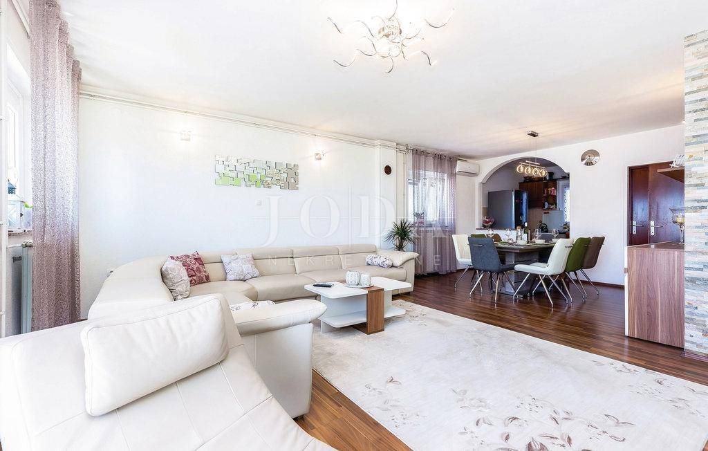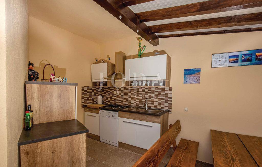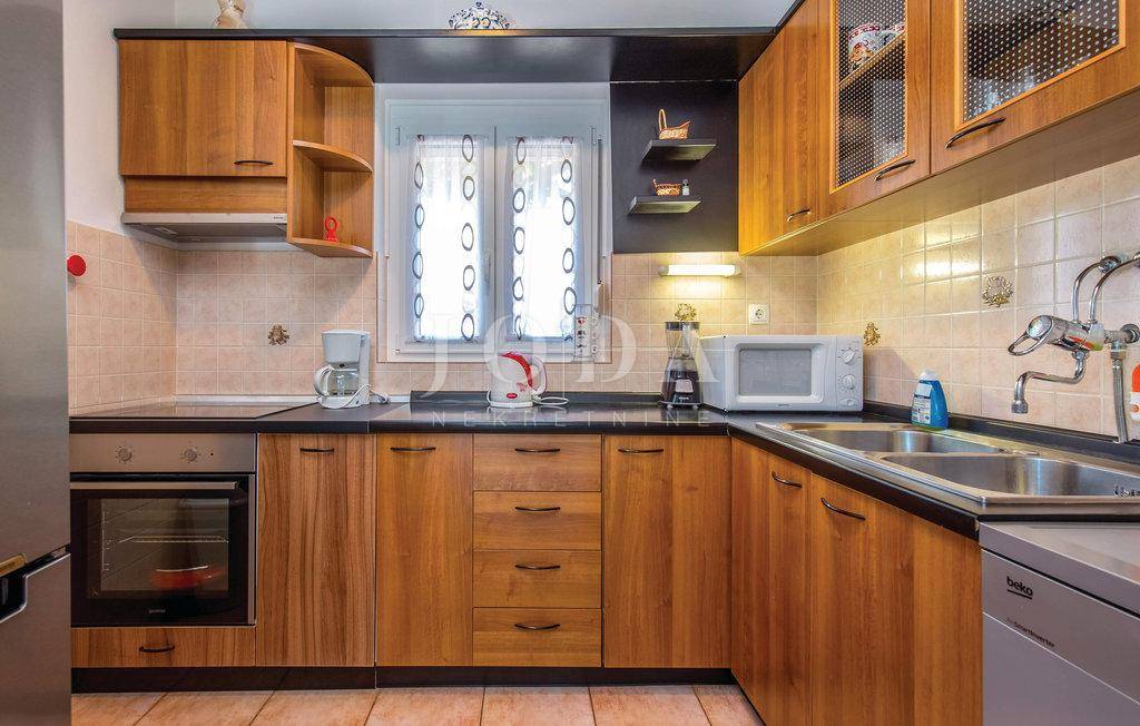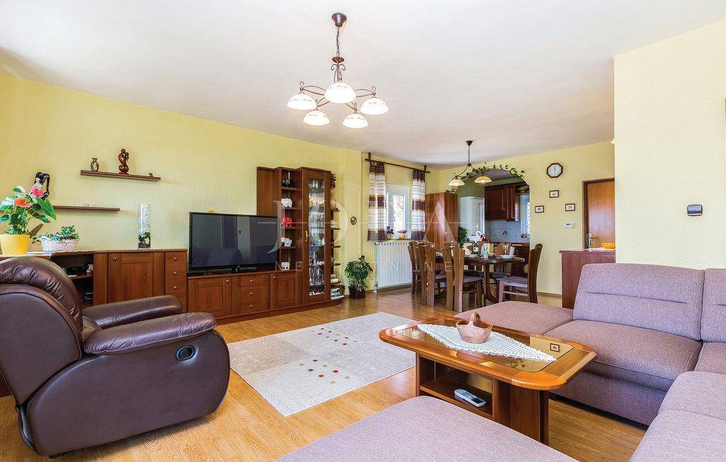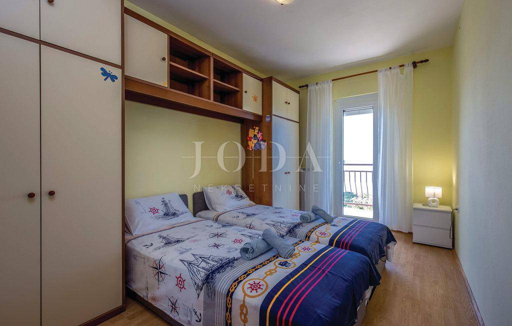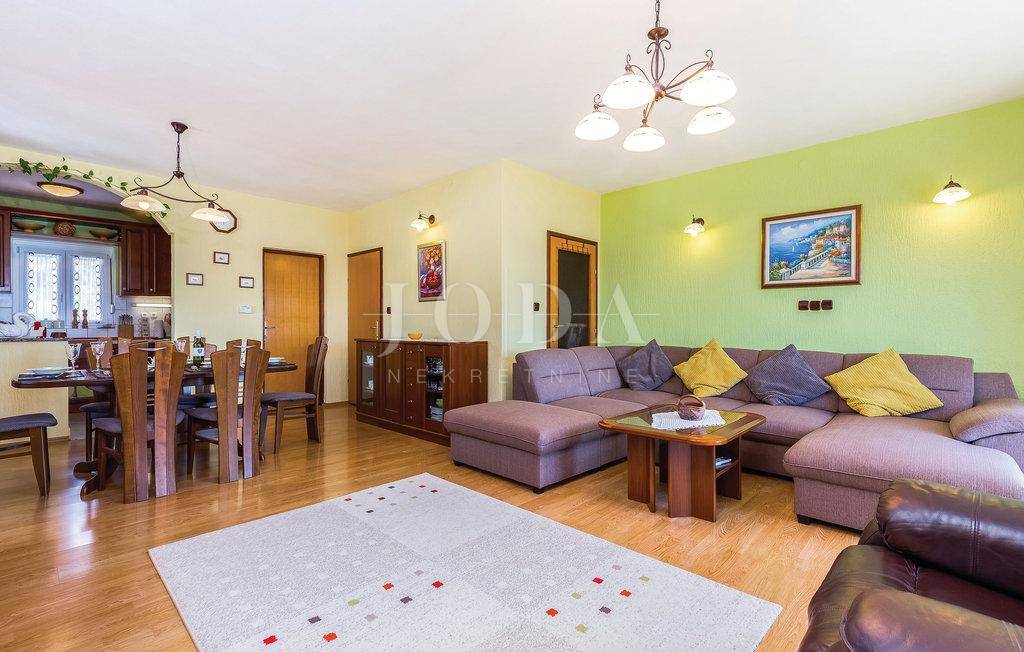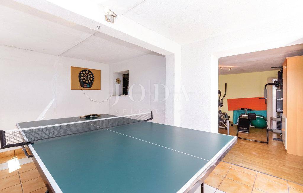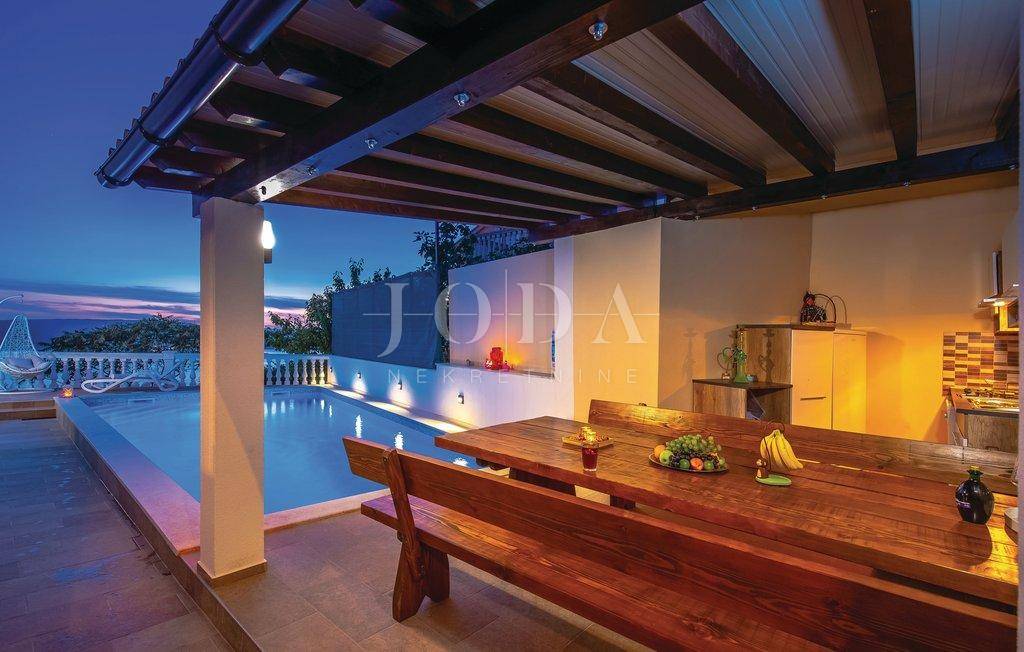 Prodajemo kuću na mirnoj i lijepoj lokaciji sa prekrasnim pogledom na grad i more. Kuća se sastoji od tri etaže. U suterenu se nalazi teretana i soba za stolni tenis površine 60m2. Prizemlje se sastoji od kuhinje sa blagovaonom, dnevnog boravka, tri spavaće sobe, dvije kupaone, ostave i terase ukupne površine 160m2. Kat ima identičan raspored+balkon površine 18m2. Potkrovlje se sastoji od kuhinje, blagovaone, dnevnog boravka, dvije spavaće sobe, kupaone i balkona površine 22m2. U sklopu okućnice je ljetna kuhinja sa terasom, bazen od 34m2 i garaža od 55m2. Kuća je u turističkom najmu.