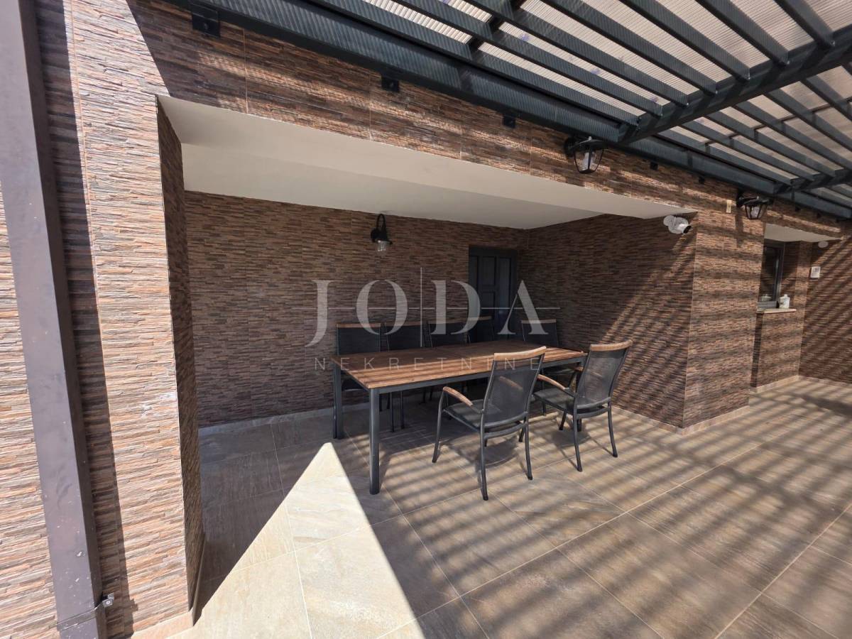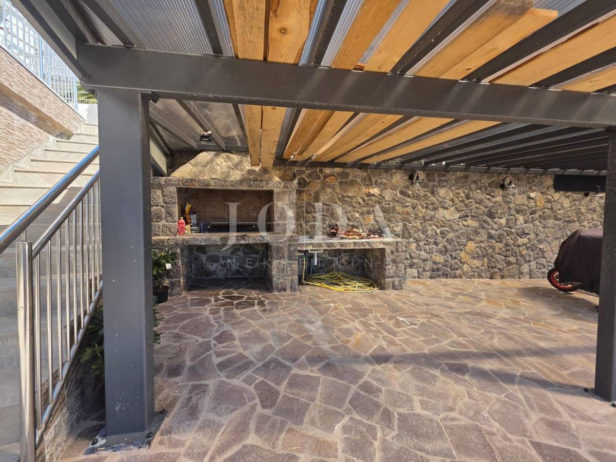 Okućnica ove nekretnine pruža pravi mediteranski ugođaj: tu je privatni bazen sa sunčalištem za potpuno opuštanje, natkrivena terasa s ljetnom kuhinjom i roštiljem – idealno za druženja i uživanje na otvorenom. U sklopu dvorišta nalazi se i prostrani parking s kapacitetom za čak šest vozila.