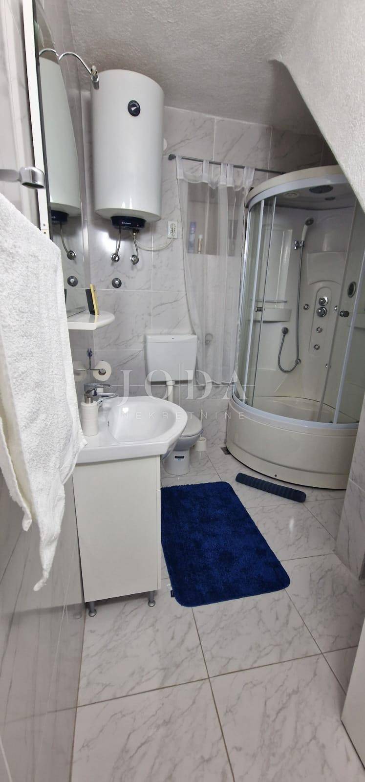 U Crikvenici, u samom centru grada prodaje se lijepa novouređena kuća sa parkingom. Kuća se sastoji od dnevnog boravka sa blagovaonom i kuhinjom, hodnika i kupaonice u prizemlju te od dvije spavaće sobe i kupaonice na katu. Uz kuću nalazi se i studio apartman sa terasom koji je također novouređen. Četiri parkirna mjesta u centru grada, blizina mora te odlična popunjenost za vrijeme turističke sezone svakako je ono što ovu nekretninu čini vrijednom Vaše pažnje.