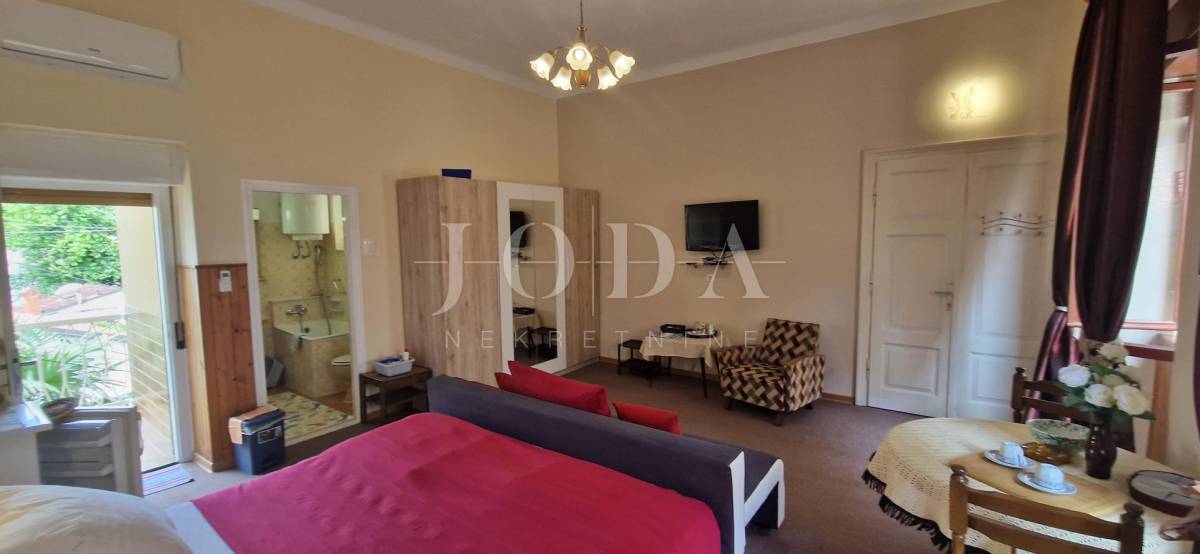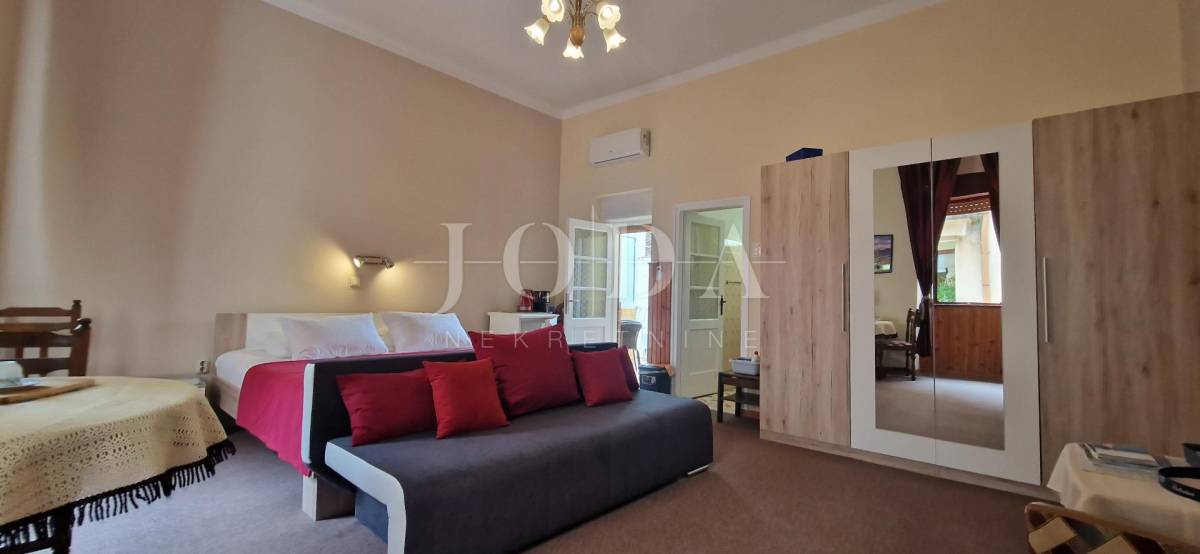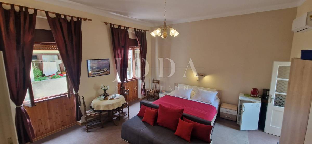 Prodaje se šarmantna kuća u srcu grada, idealna za turističko poslovanje. Ova nekretnina predstavlja savršenu priliku za one koji žele investirati u već uspješan turistički posao. Kuća se nalazi u centralnom dijelu grada, blizu svih glavnih turističkih atrakcija, restorana, kafića i javnog prijevoza. Ista se sastoji od apartmana u prizemlju, sobe sa kupaonicom i balkonom na prvom i na drugom katu te od sobe i balkona u potkrovlju koju je potrebno adaptirati. Hodnik i stepenice su zajednički prostor i dijele se sa drugim dijelom kuće. Prednosti ove nekretnine su svakako visok povrat na investiciju te brz povrat na investiciju zahvaljujući stalnom priljevu gostiju zbog lokacije.