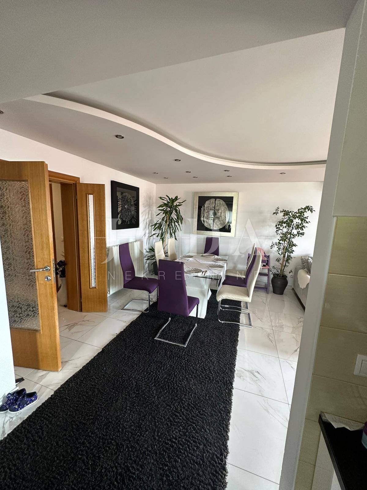 Tri spavaće sobe,dvije kupaonice veliki otvoreni koncept dnevnog boravka i kuhinje te dva balkona sa pogledom na more.