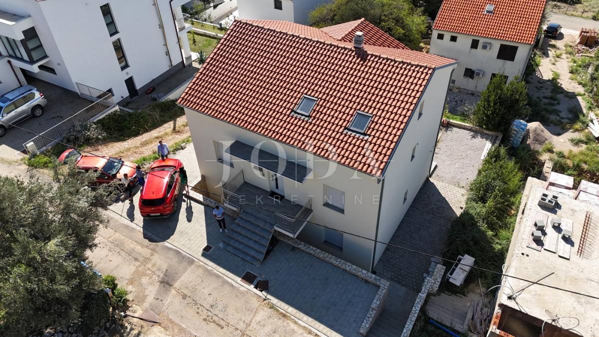 Prizemlje i kat su identičnog odličnog tlocrtnog rasporeda sa tri spavaće sobe,dvije kupaonice,spremišta te kuhinje i dnevnog boravka.Prizemlju u vlasništvu ide kompletna okućnica cca 100m2 dok stan na katu ima balkon i lijep pogled na more.