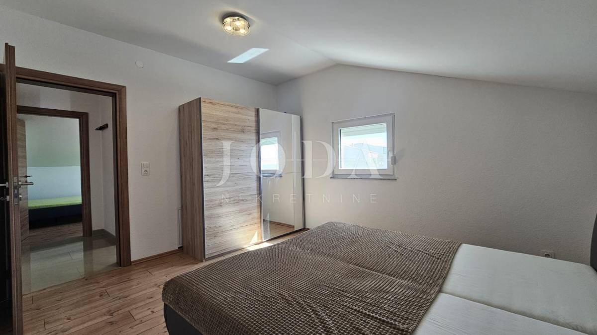 Stan u visokom potkrovlju se sastoji također od tri spavaće sobe,kuhinje i dnevnog boravka te jedne kupaonice.Pogled sa balkona stana na vrhu je spektakularan.