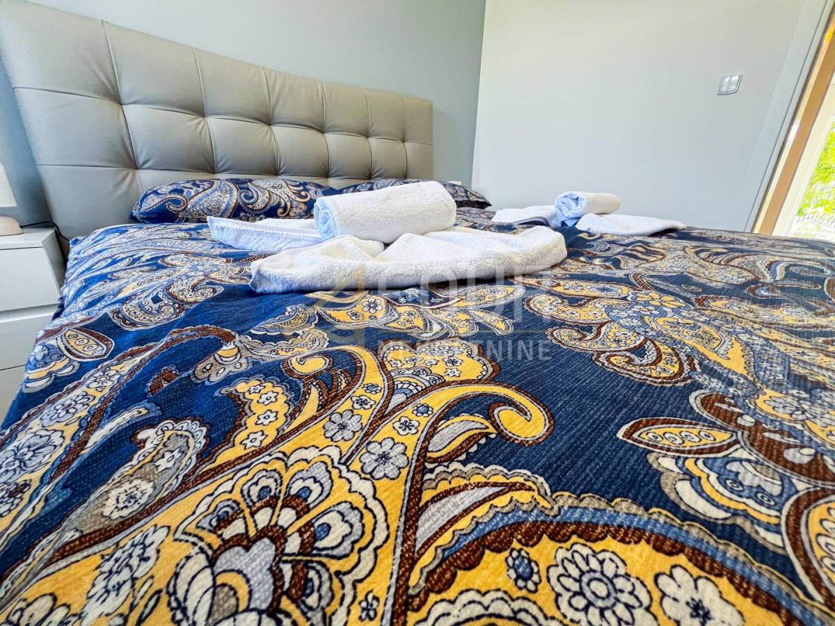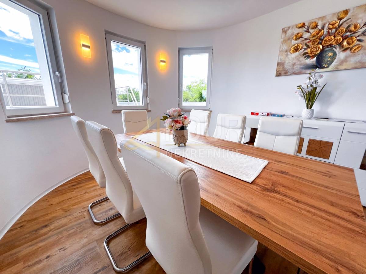 Uređena okućnica donosi potpuni osjećaj privatnosti – tu su bazen, sunčalište, roštilj i dovoljno prostora za opuštanje. Na raspolaganju su i dvije garaže, kao i više od sedam parkirnih mjesta. Nekretnina je opremljena centralnim grijanjem, klimom, PVC stolarijom i solarnim panelima te se nalazi oko 800 metara od mora.