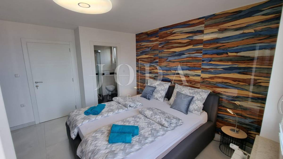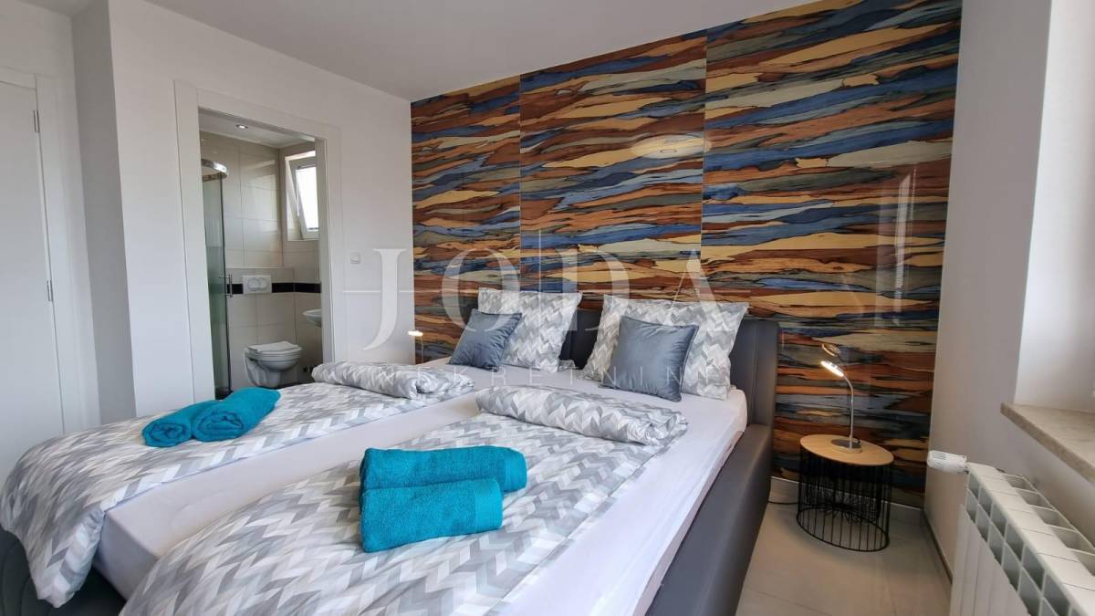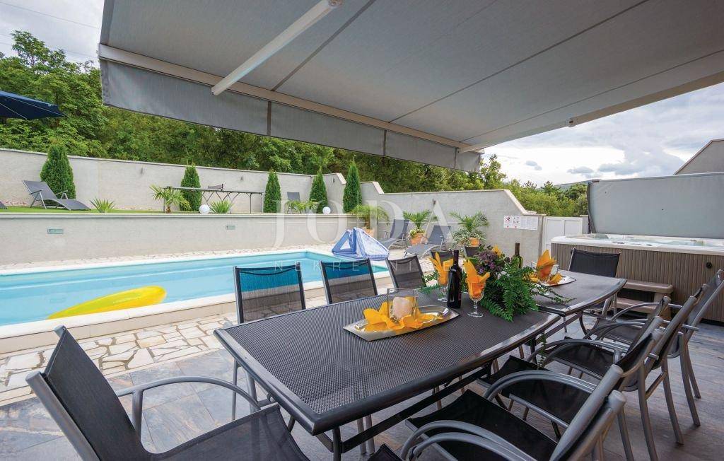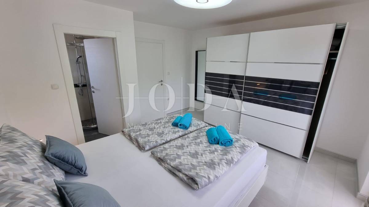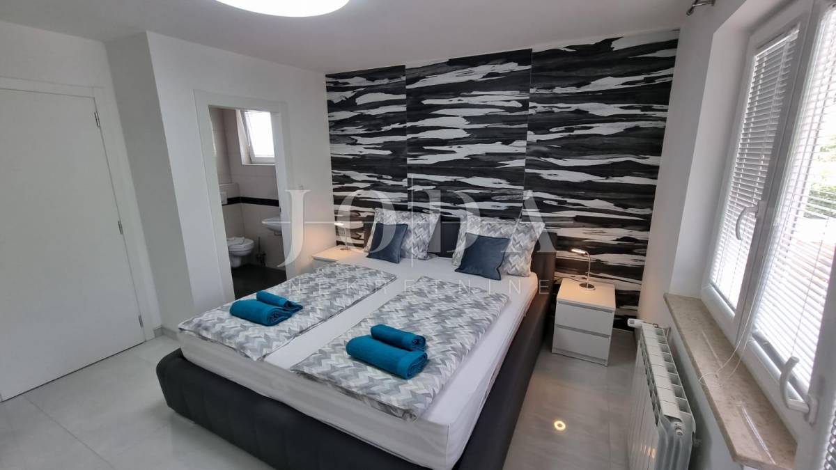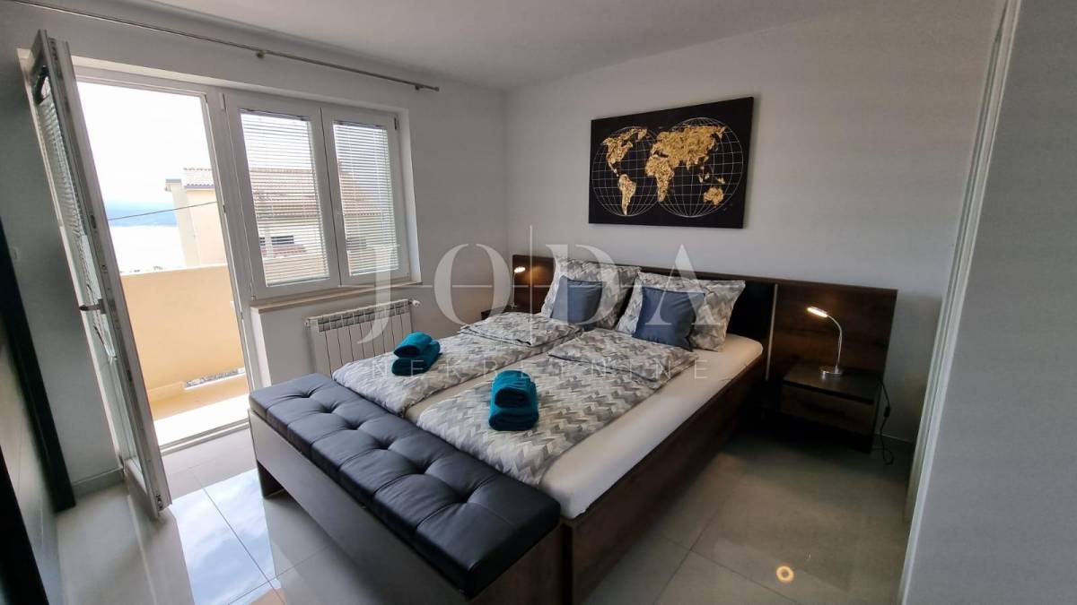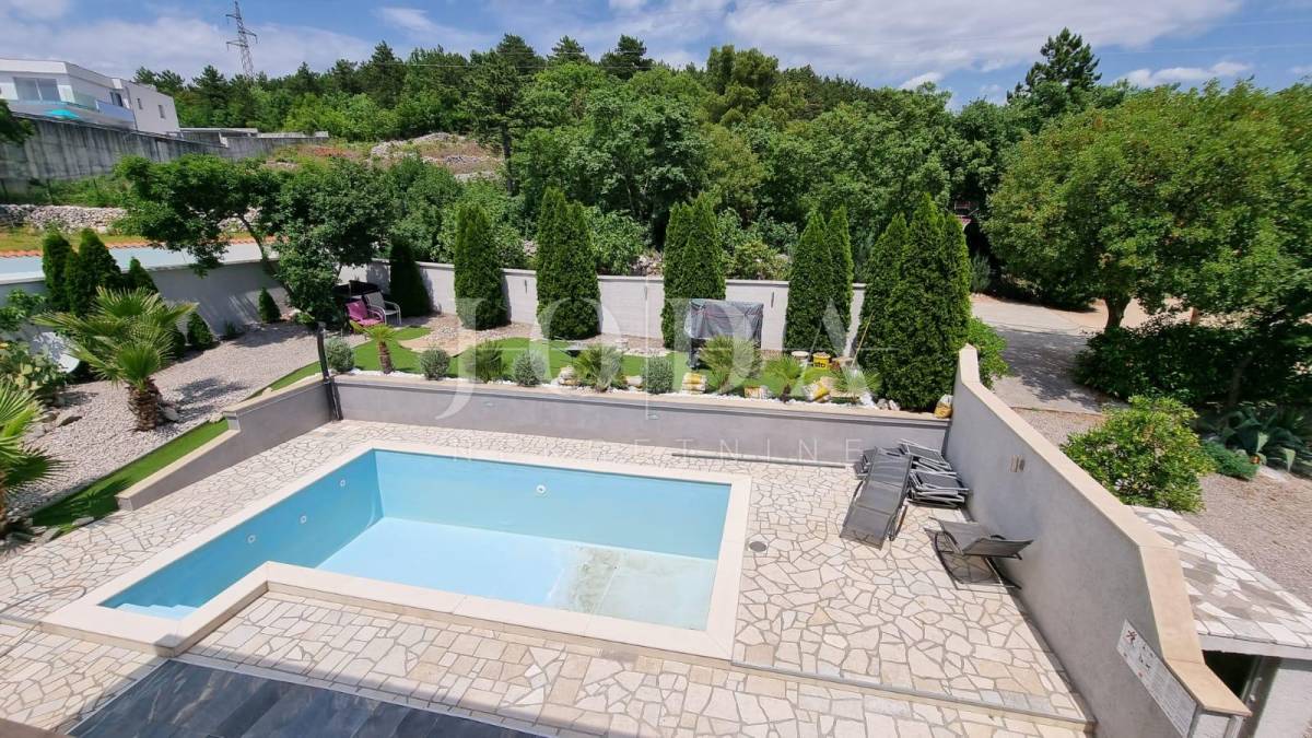 Crikvenica, samostojeća kuća sa bazenom na mirnoj lokaciji, podalje buke i vreve. Stambene površine 400 m2, a sastoji se od suterena, prizemlja, kata i potkrovlja. U suterenu se nalazi studio apartman, te još jedan dvosobni stan s dnevnim boravkom. U prizemlju je velika kuhinja sa blagovaonom iz koje se izlazi direktno na vanjsku terasu, a tu su još i dvije spavaće sobe, kupaonica, te terasa koja gleda na jug. Na katu se nalaze četiri sobe, četiri kupaone, te terasa. Komunikacija među etažama je unutarnjim stubištem. U potkrovlju su četiri spavaće sobe, dvije kupaonice, te pomoćna kuhinja. U stražnjem dijelu se nalazi bazen, te jacuzzi. Dodatni su i sadržaji poput stolnog tenisa, pikada, badmintona i koša za košarku, te roštilja. U okućnici ima dosta zelenila, a sa stražnje strane kuće je šuma. Osim što ima 4 parkirna mjesta ima i dvije garaže za automobile. Nekretnina idealna za bavljenje turizmom!