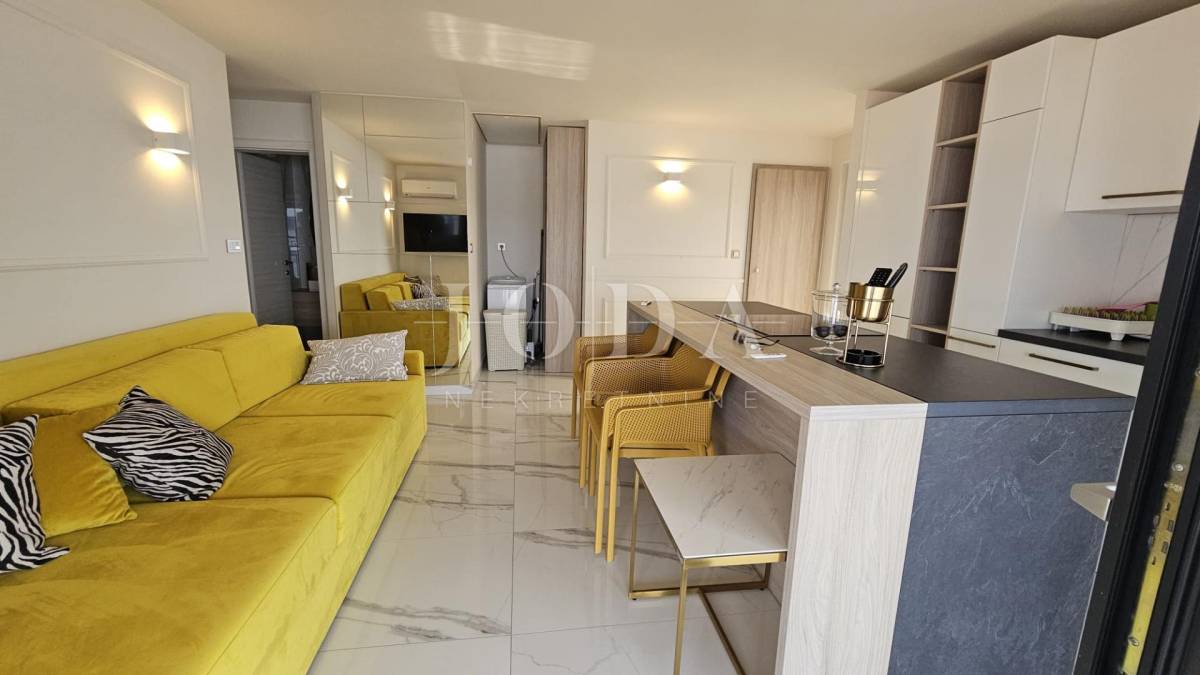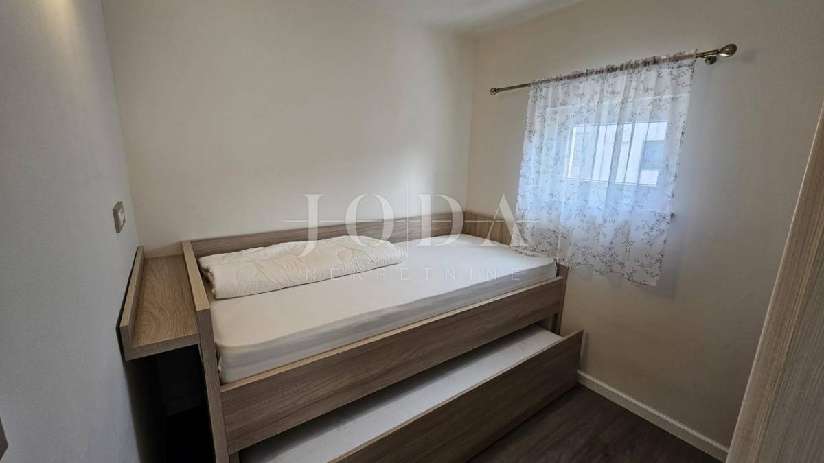 Na drugom katu manjeg stambenog objekta,prodaje se stan odličnog tlocrtnog rasporeda sa velikom terasom.Dvije spavaće sobe,kupaonica,kuhinja sa blagavaonicom te terasa sa spektakularnim pogledom na more.Iznad stana je visoko potkrovlje sa sanitarnim čvorom u vlasništvu.