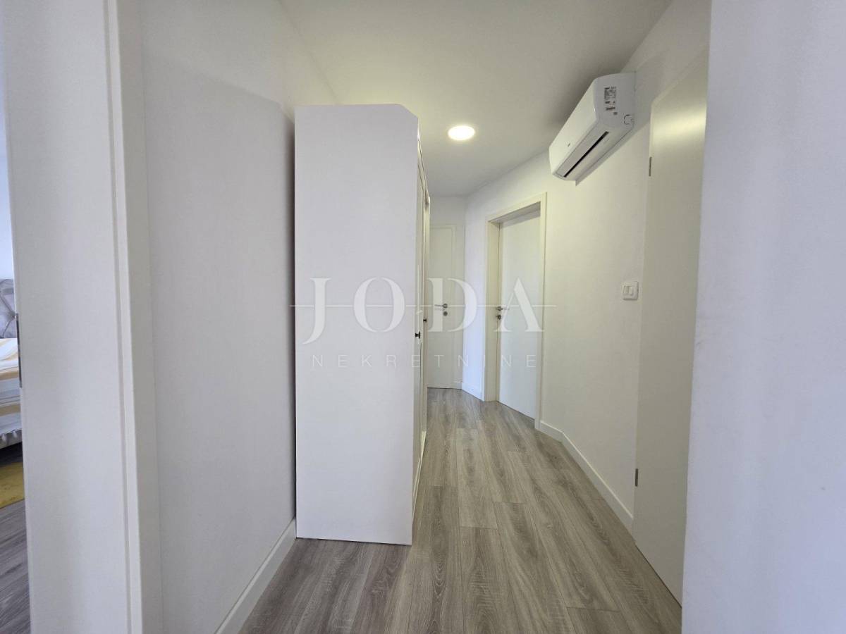 Opremljen je s dva klima-uređaja, u potpunosti je namješten i odmah useljiv. Iz stana se pruža pogled na more. Stanu pripada jedno parkirno mjesto.