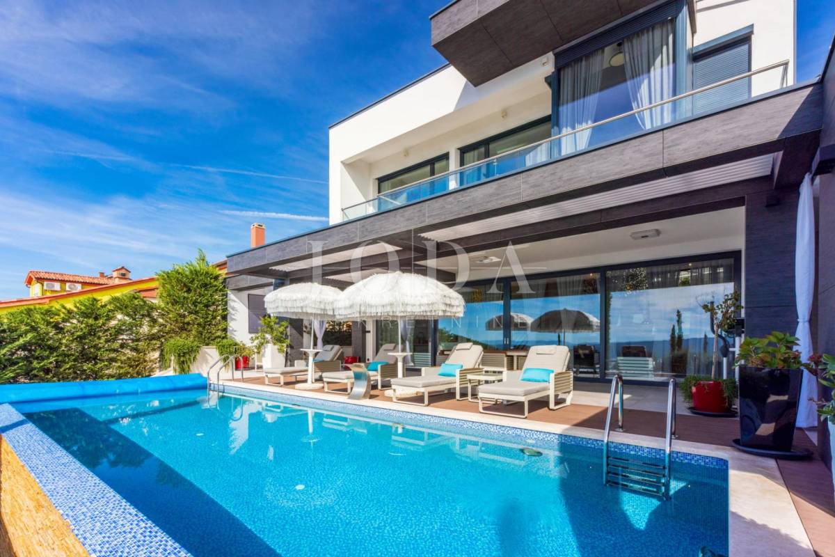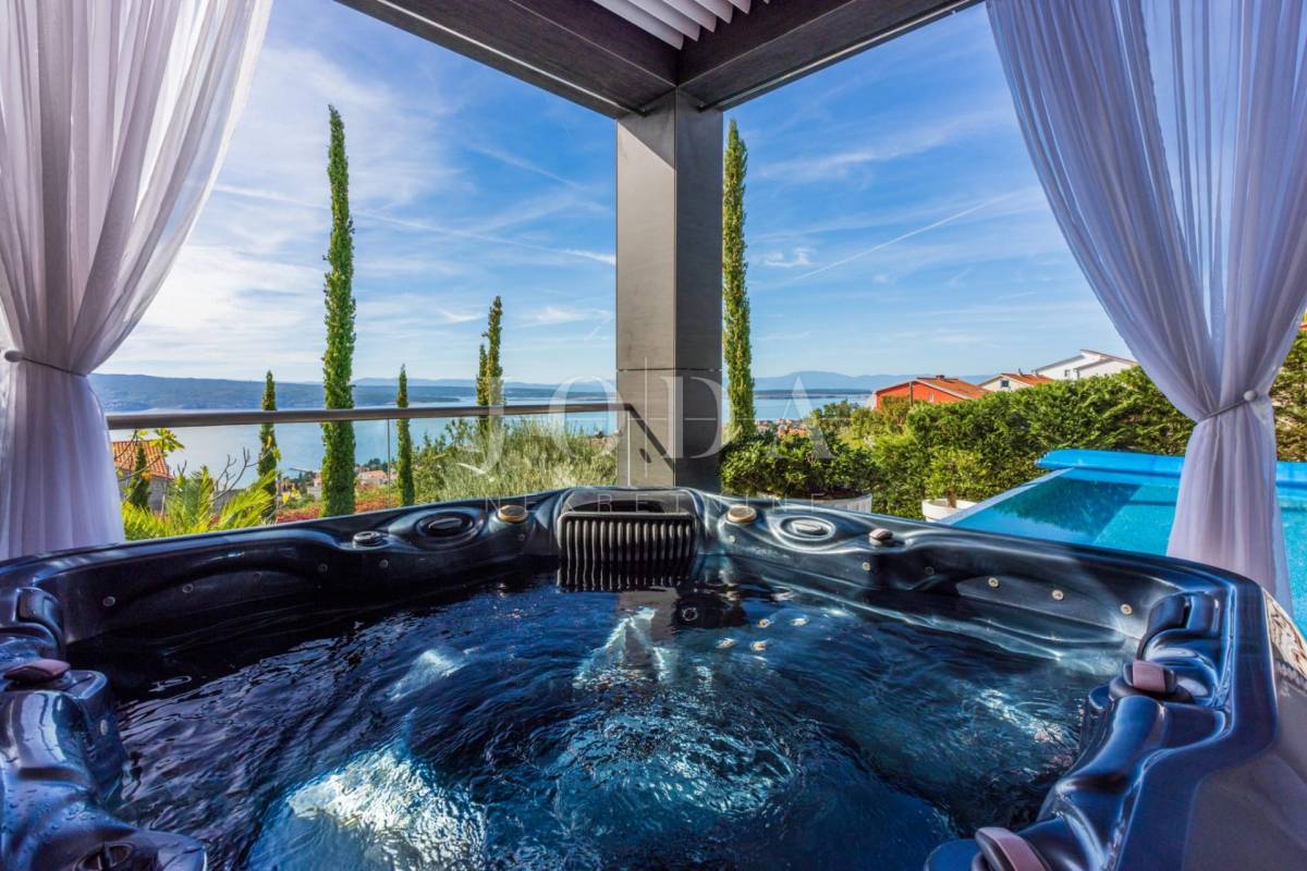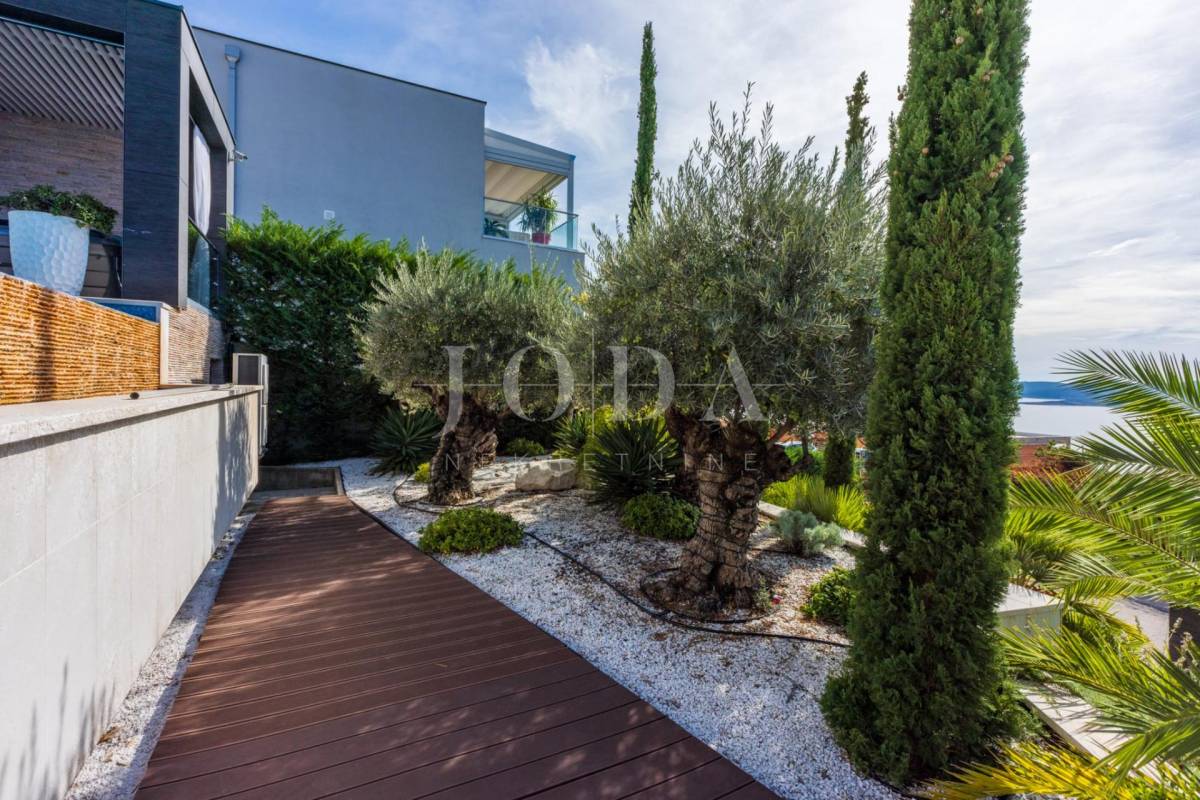 Na povišenom dijelu Crikvenice,sa panoramskim pogledom na more ,a unutar pomno uređene okućnice smještena je ova raskošna kuća.