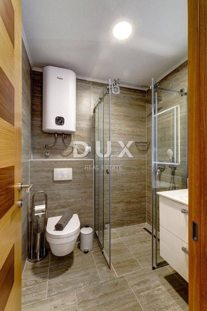 Ovaj lijepi novi dvojni objekt s bazenom smjestio se na oko 550 metara od mora. Njegova najljepša strana je što je okrenut prema moru i sa svih etaža se pruža lijepi pogled. U prizemlju ovog objekta smjestile su se kupaonica, spavaća soba s vlastitom kupaonicom, kuhinja s blagovaonicom i dnevnim boravkom iz koje se izlazi na natkrivenu terasu i lijepo opločenu okućnicu s bazenom i sunčalištem. Unutrašnje stepenište vodi u podrumsku etažu s velikom prostorijom koja se može urediti po vlastitoj želji, u podrumu se još nalaze strojarnica sa spremištem i kupaonica. Na katu se nalazi kupaonica, tri sobe od kojih dvije imaju vlastitu kupaonicu, a dvije sobe imaju i izlaz na terasu s panoramskim pogledom na more i otok Krk. U objekt s ugrađeni vrhunski materijali, a na terasi su na dva mjesta pušteni voda i odvodnja za mogućnost izgradnje ljetne kuhinje.