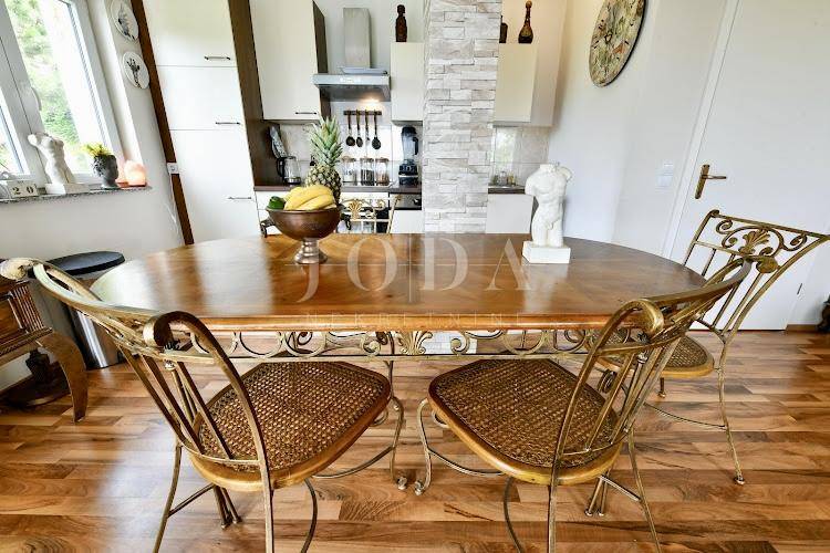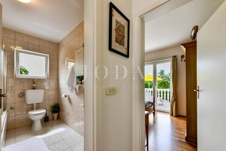 Velika uređena okućnica sa bazenom i puno njegovanog bilja stvaraju potpuni sklad s ovom odlicnom kućom.