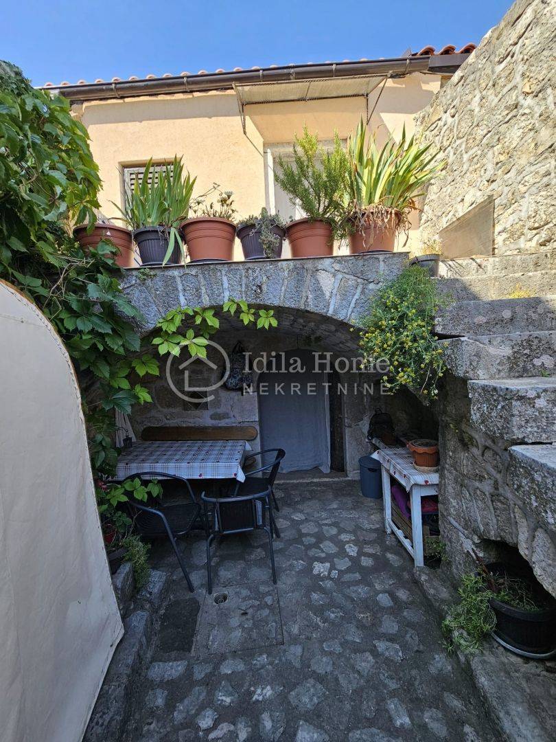 Kuća se sastoji od dvije etaže i tzv. dvor što podrazumijeva prostor okružen kamenim zidom koji je otvoren, daje Vam dozu privatnosti gdje možete uzgajati razno bilje i cvijeće.