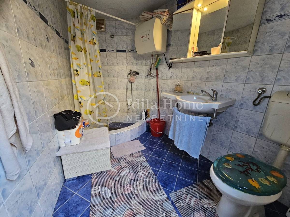 Desno od ulaza nalazi se kupaonica sa wc-om (6m2) koju neometano mogu koristiti obje etaže jer se i u dnevnoj sobi može prespavati.