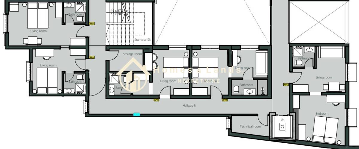 30 namještenih i etažiranih apartmana veličine 15–30 m²(mogućnost spajanja dvaju apartmana u veći stambeni prostor)