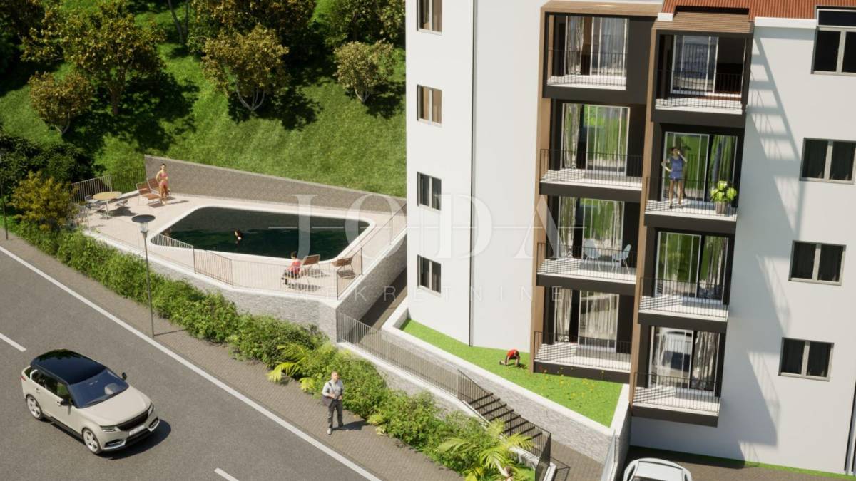 Sve jedinice imaju balkone sa prekrasnim pogledom na more. Unutar okućnice se radi i veliki bazen sa dva sunčališta za korištenje sva 4 objekta.