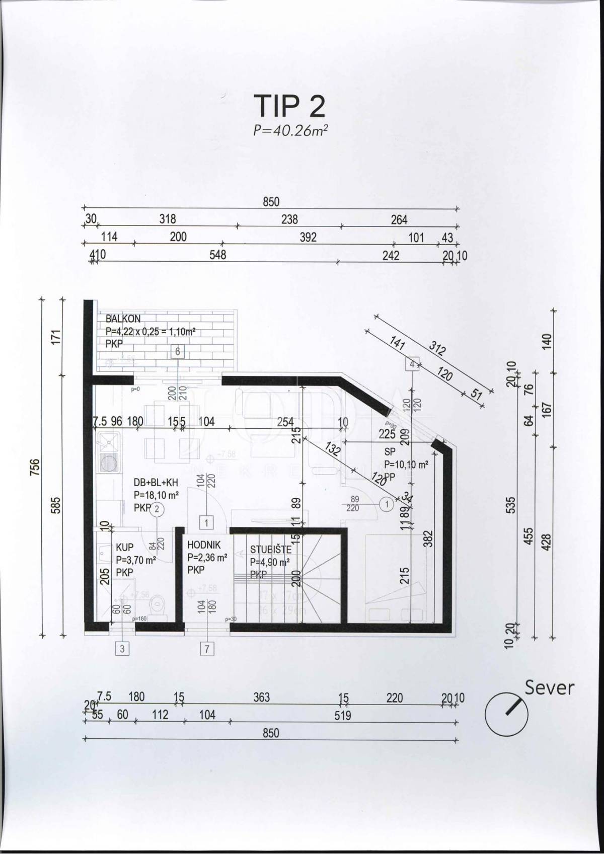 Sastoji se od 4 jednosobna stana sa dnevnim boravkom, potpuno odvojena jedan od drugoga (svaki na jednoj etaži).