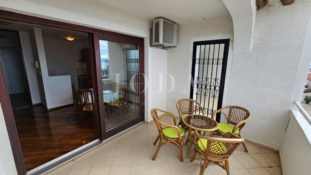 Stan na 2.katu trokatnice sa velikom loggiom i lijepim pogledom na more.Objekt se nalazi niti 200 metara od plaže,u pješačkom dosegu restorana,dućana i javnog prijevoza.