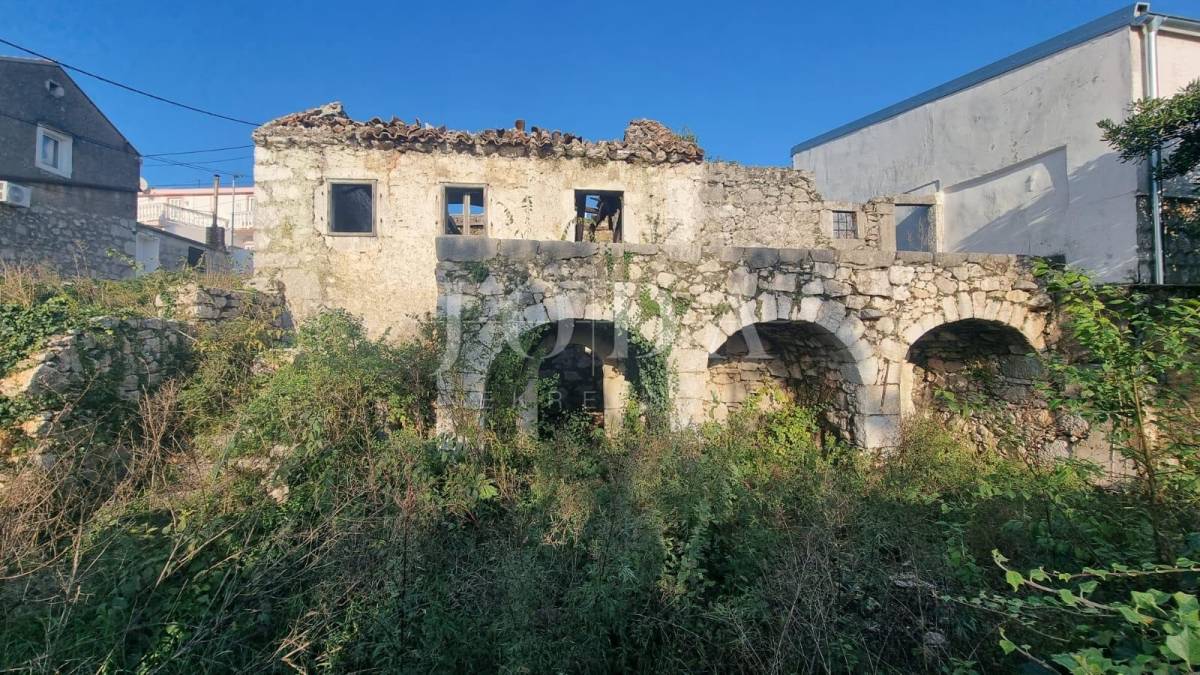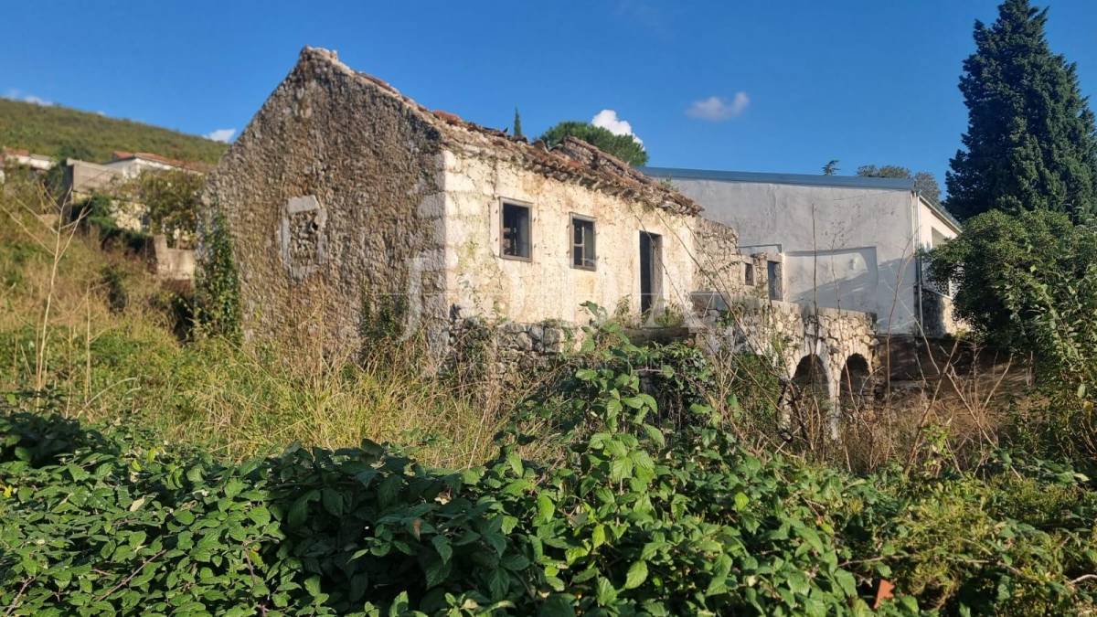 Na super lokaciji 400 metara od plaže,prodaje se kamena ruševina sa lijepom okućnicom i pogledom na more.