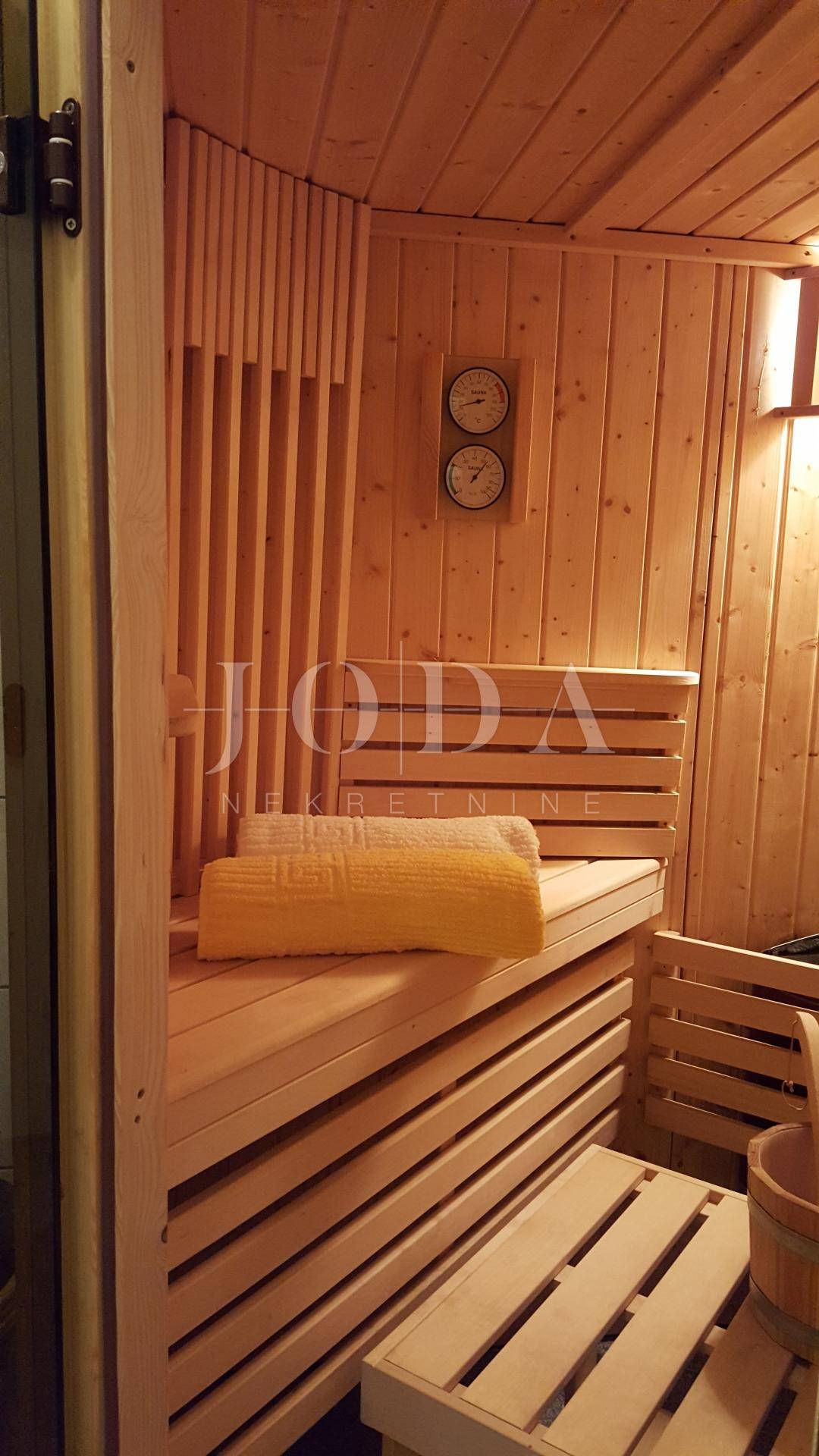 S dvije garaže i okružen bujnim i prostranim vrtom, ovaj dom vas poziva da uživate u miru i spokoju svog okruženja. Pedantno održavan vrt nije samo vizualna poslastica, već također ugošćuje primamljivu saunu i prostor za stolni tenis, pružajući brojne mogućnosti za opuštanje i zabavu.